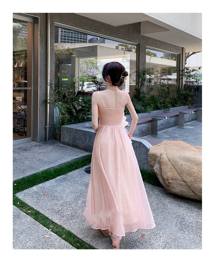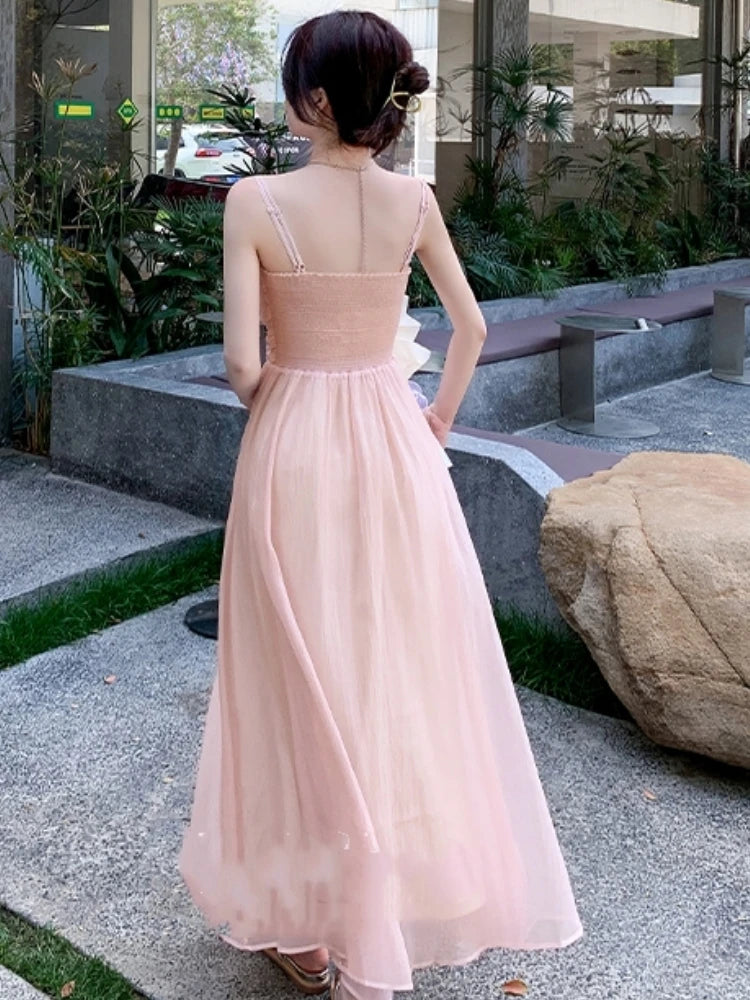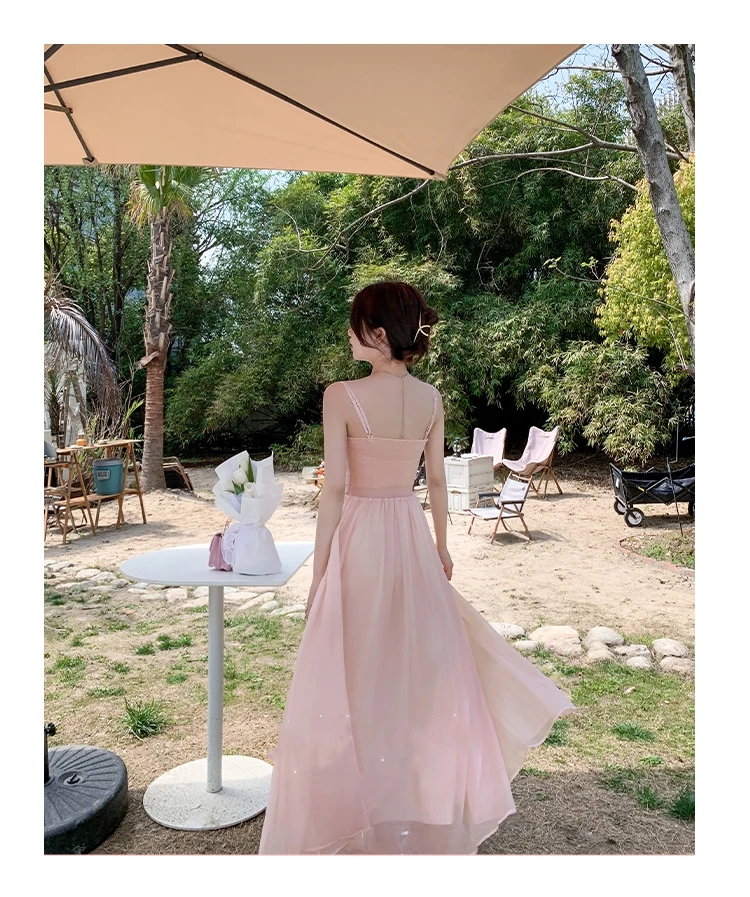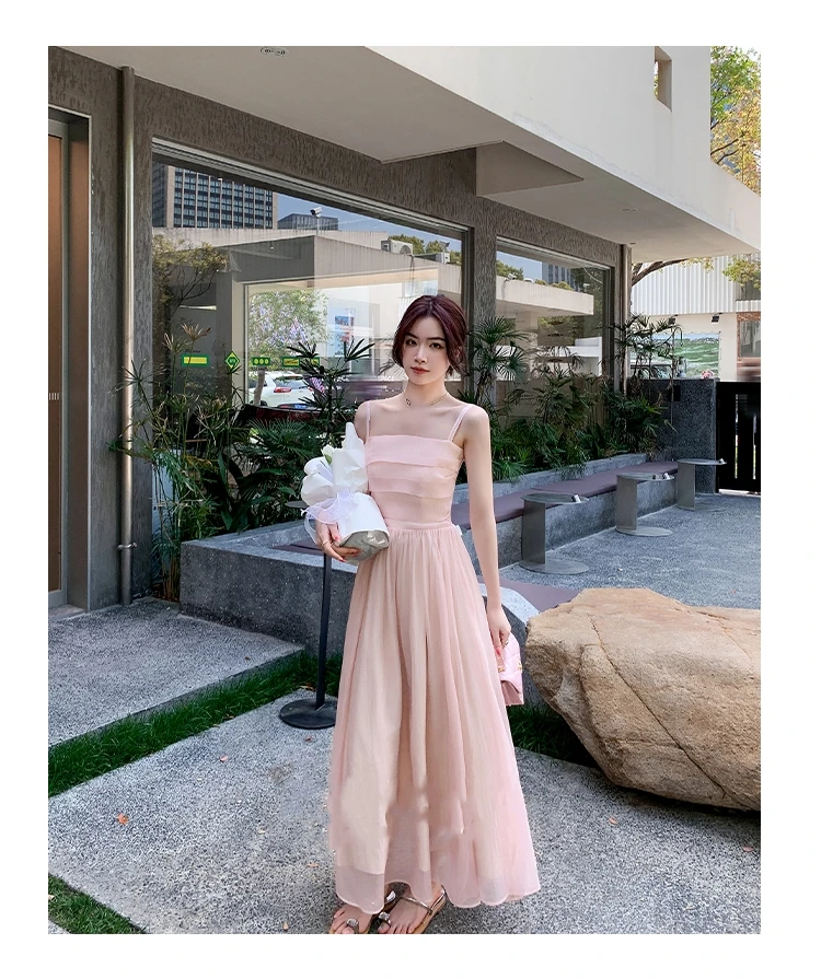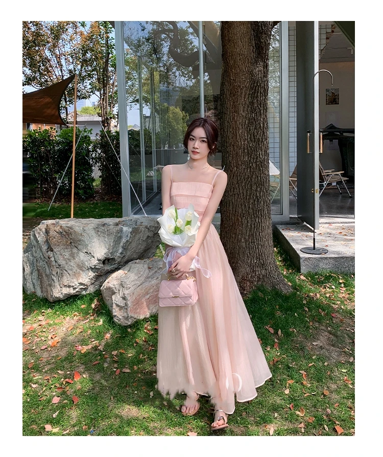 Advbridge Spring Summer New Satin Midi Spaghetti Strap Dresses for Women Pink Dress Wedding Evening Party Dress Prom Robe Vestidos