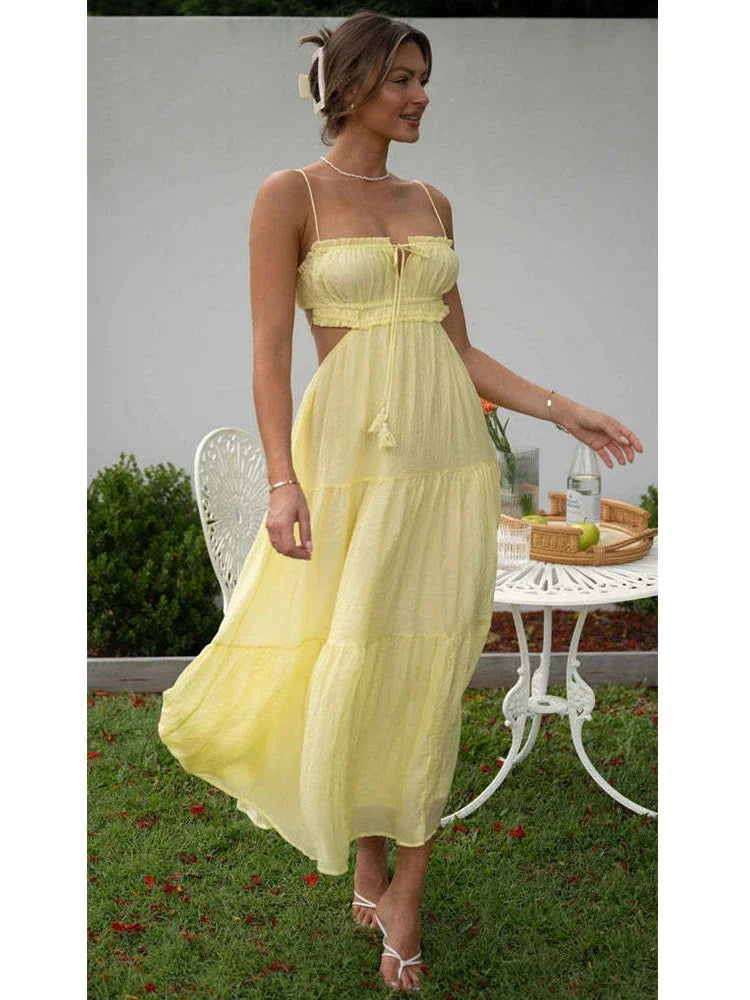Advbridge Strapless Yellow White Summer Dress for Women Elegant Holiday Beach Boho Maxi Long Sundress Backless Sexy Party Vestidos