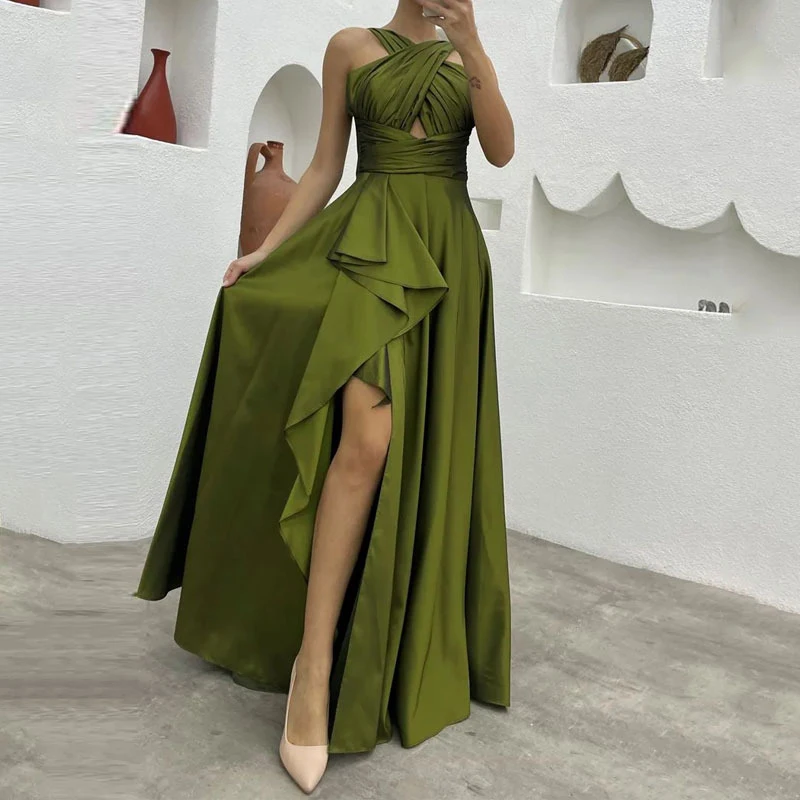 Advbridge Summer Sexy Cross Halter Split Solid Party Dress Fashion Irregular Formal Dresses Women Elegant French Pleated Evening Dress