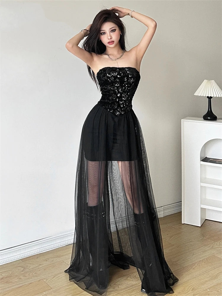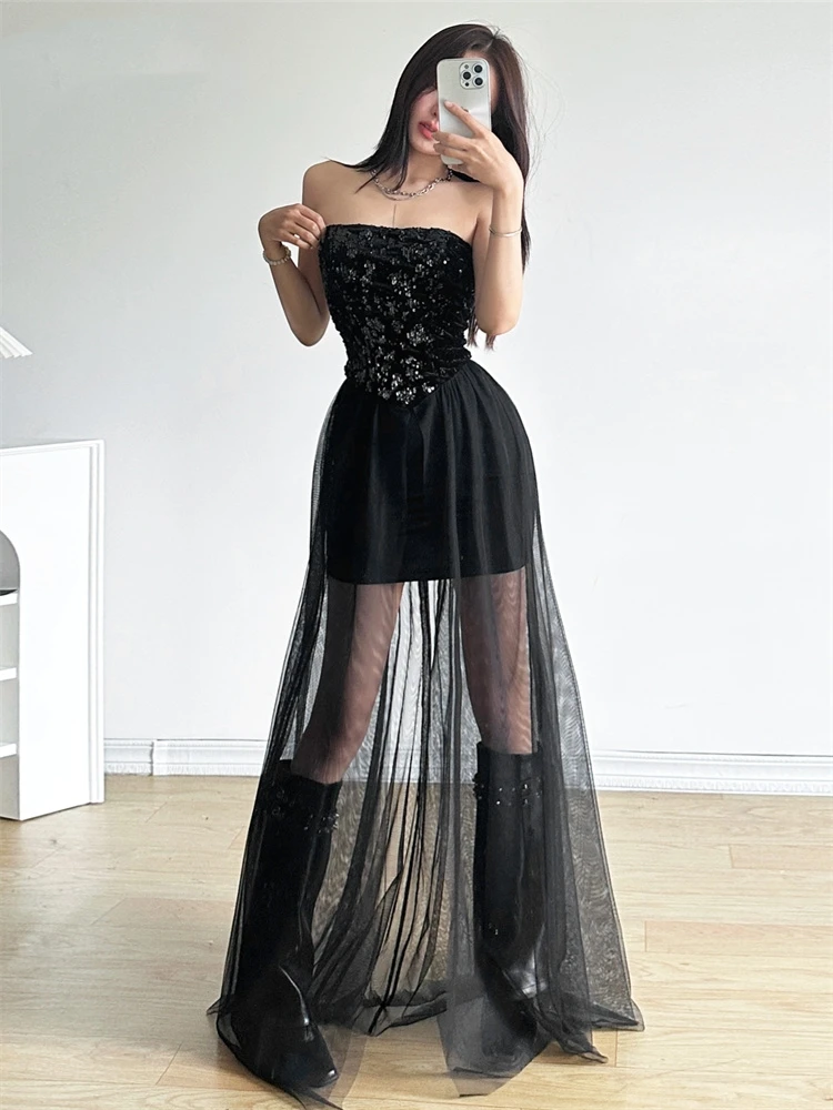 Advbridge Summer Sexy Sisters Party Tulle Pleated Dress For Women Elegant Black Corset Holiday Dresses Female Bridesmaid Robe