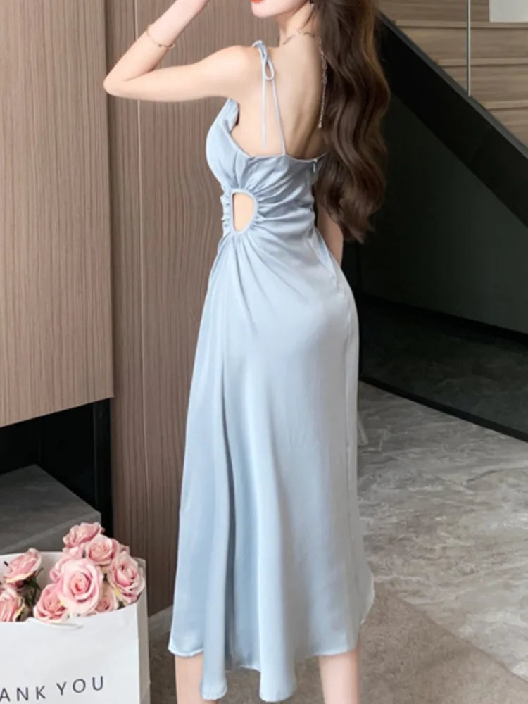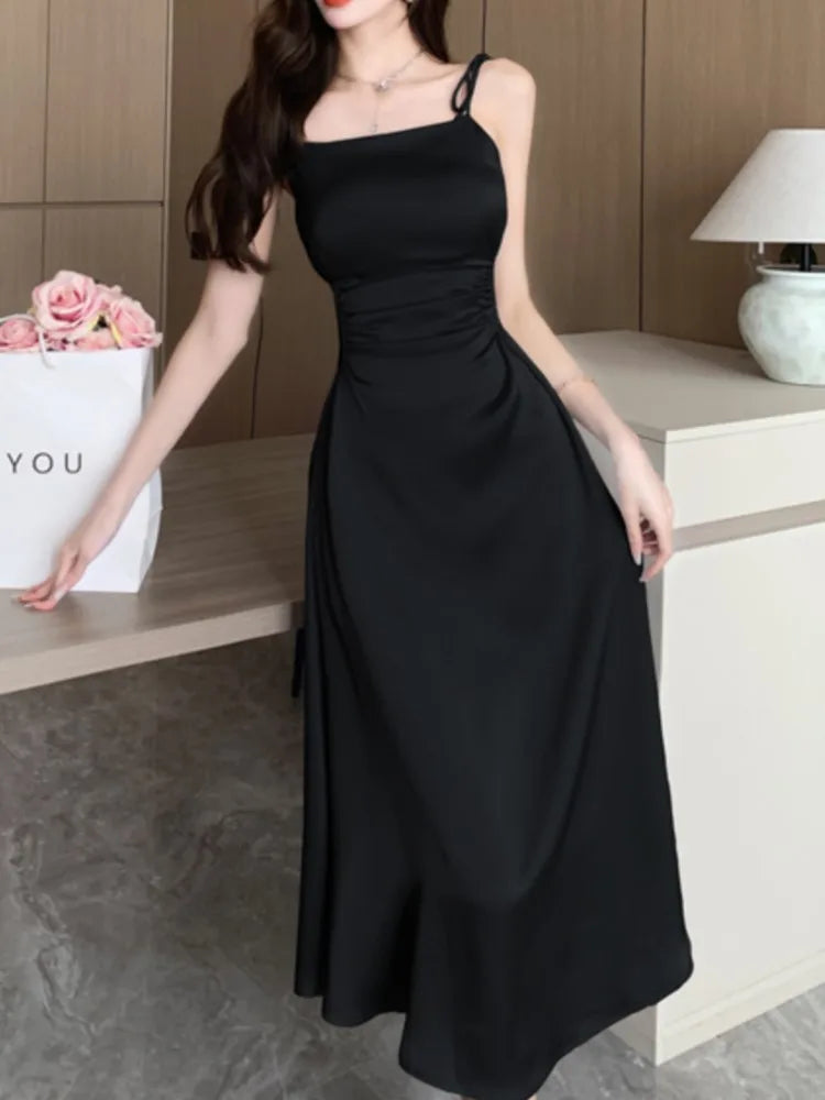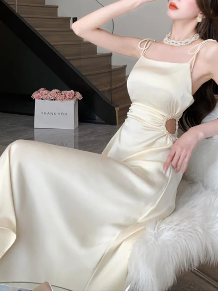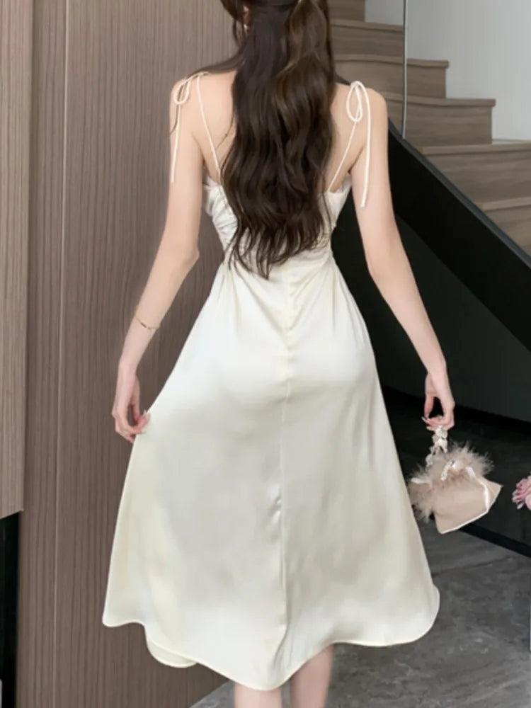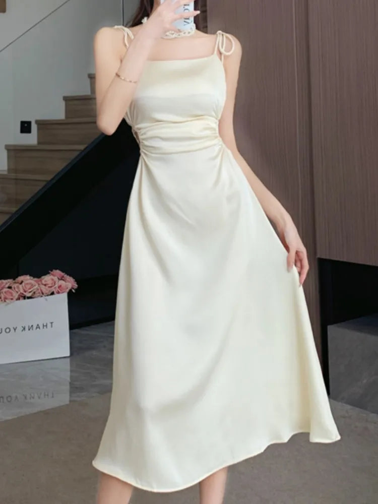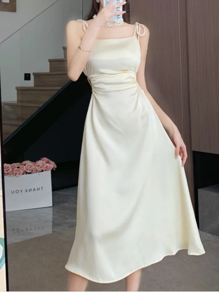 Advbridge Summer Sexy Spaghetti Strap Satin Party Dresses Women Fashion Vintage Bodycon Slim Birthday Vestidos Female Chic Solid Robe