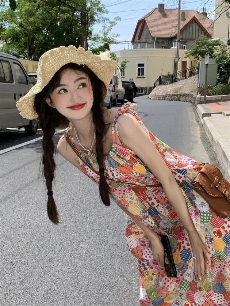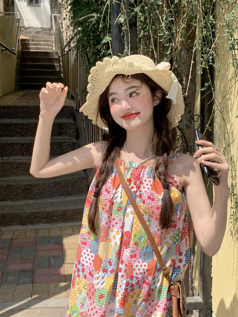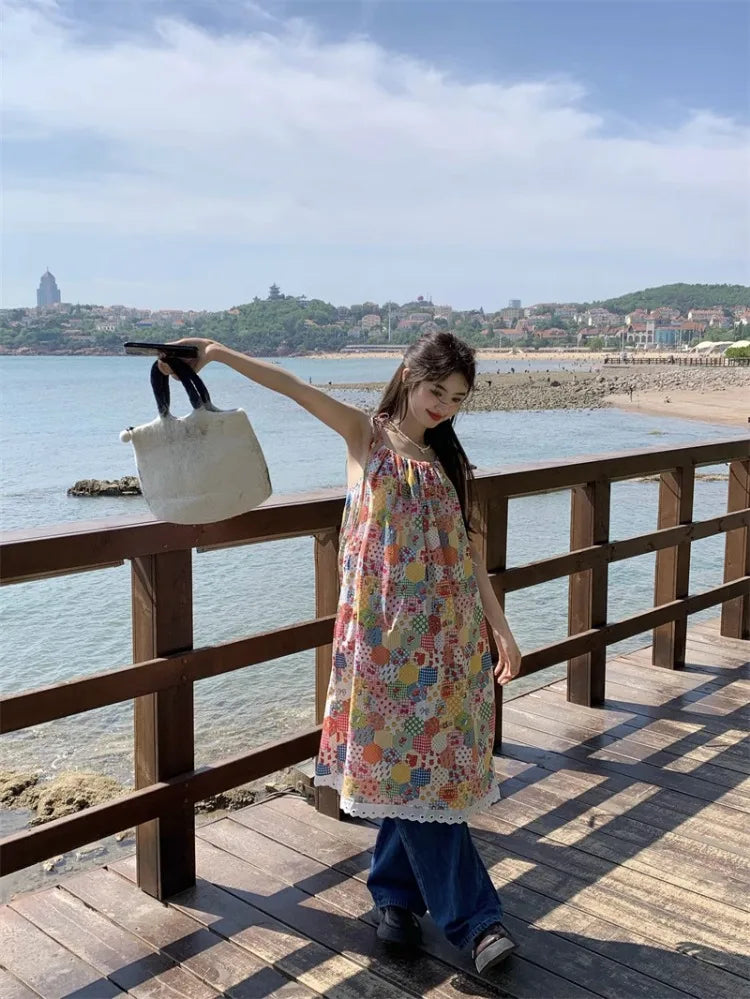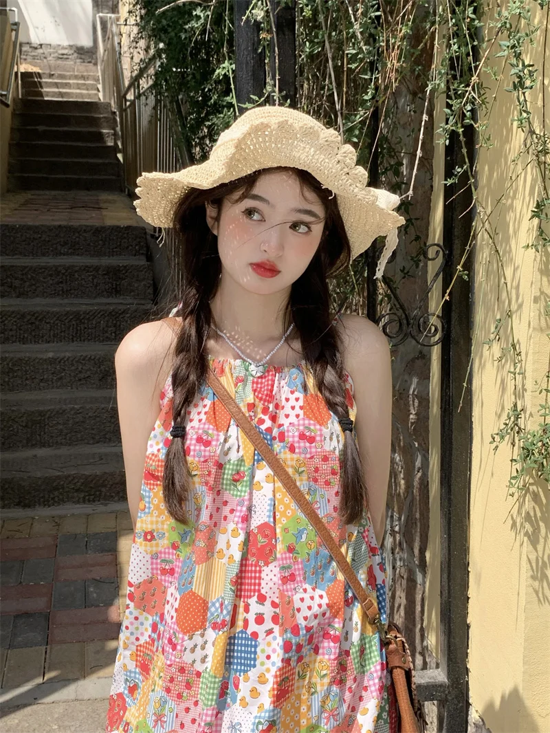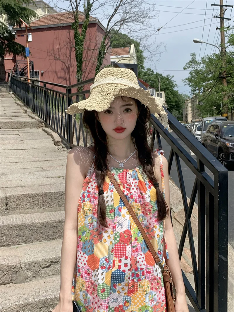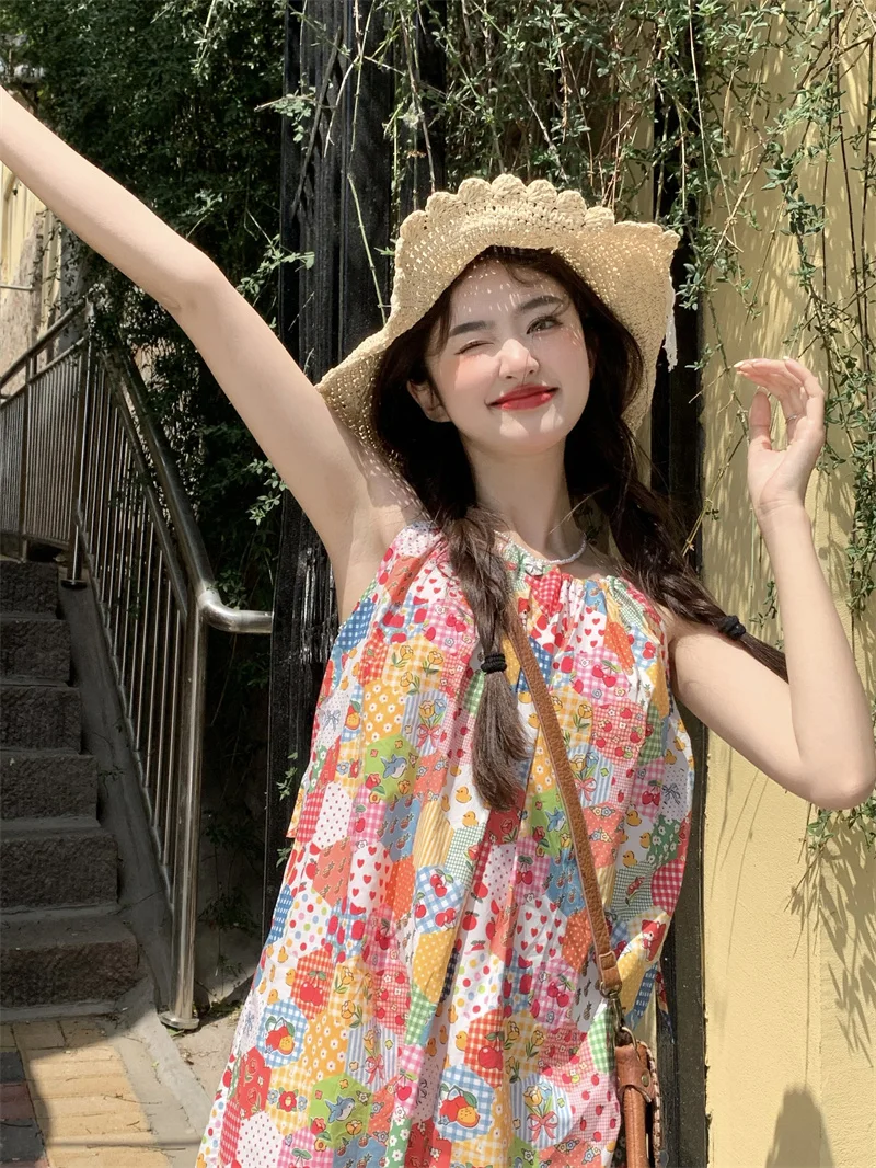 Advbridge Sweet Age Reduction Dress Cute Floral Splicing Lace Loose Slip Dresses for Women Sleeveless Fashion Vestidos Para Mujer
