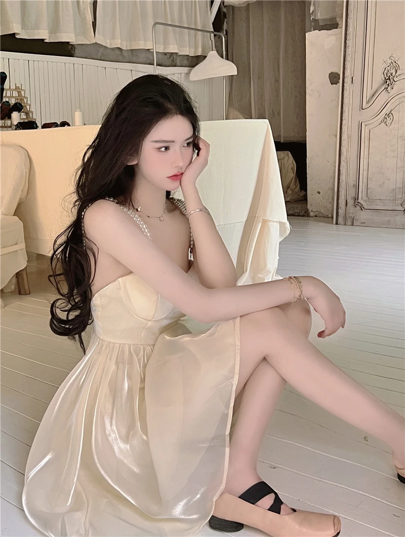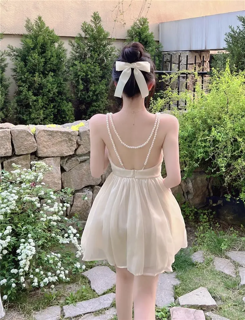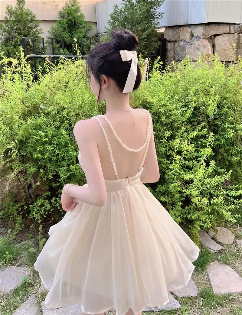 Advbridge Sweet Backless Solid Mini Dress Women Spaghetti Strap Summer A-line High Waist Holiday Beach Party Sexy One Piece Vestidos New