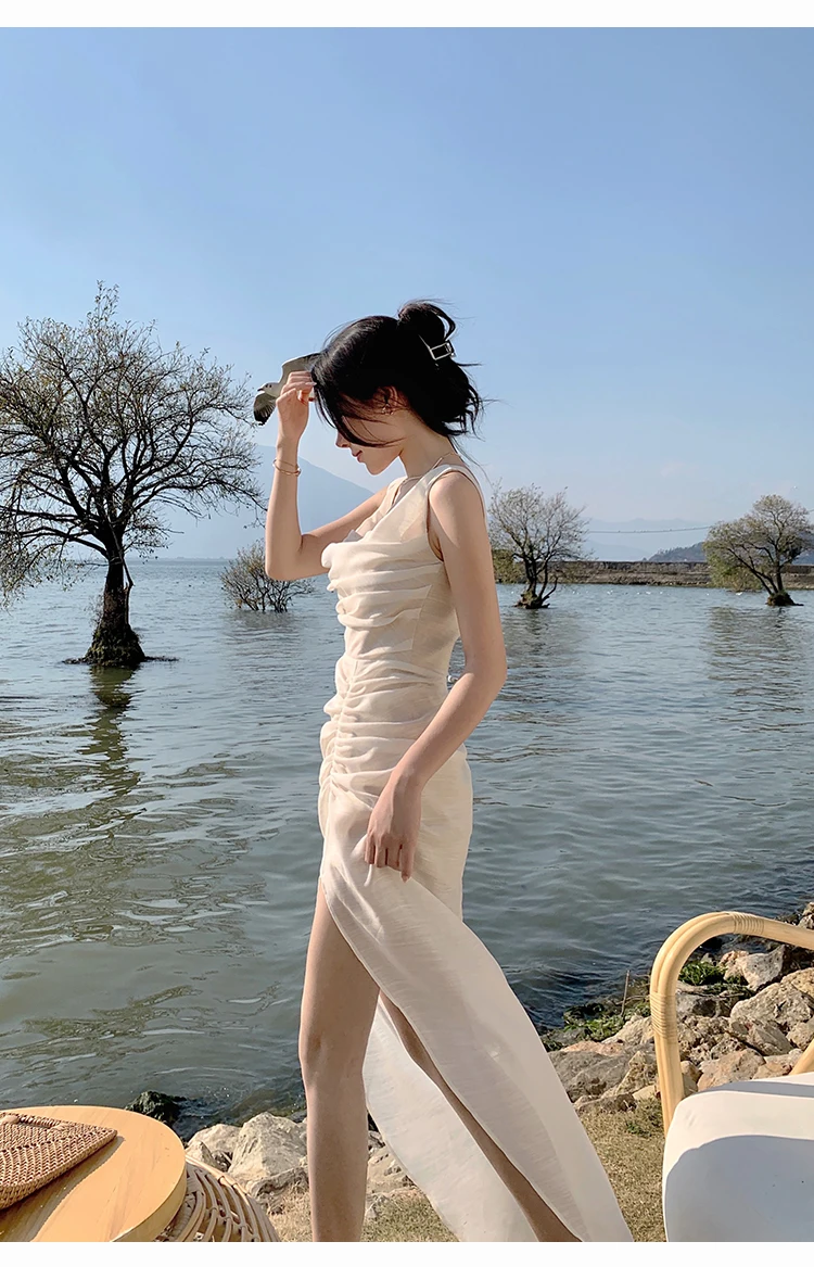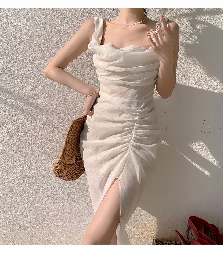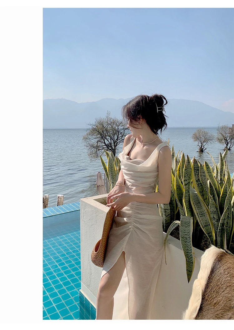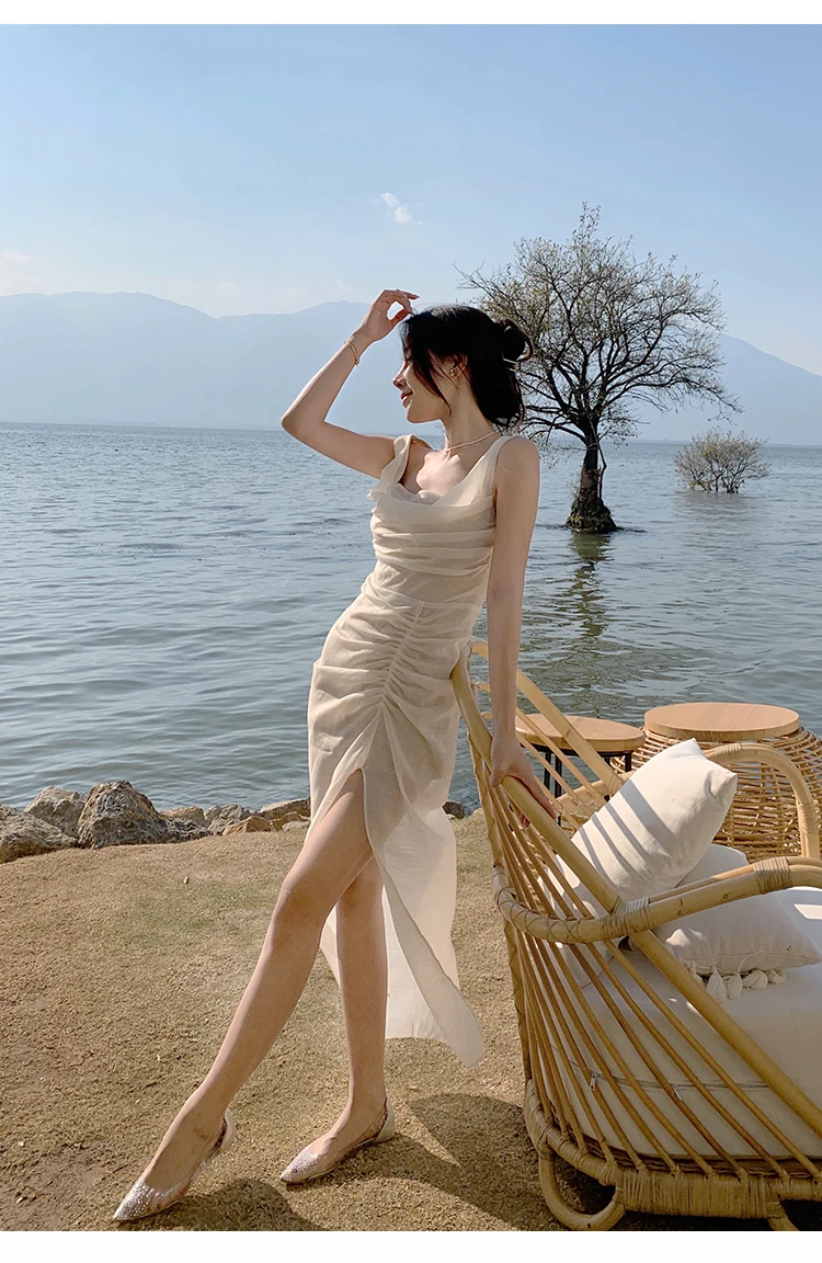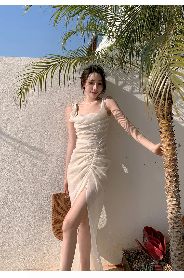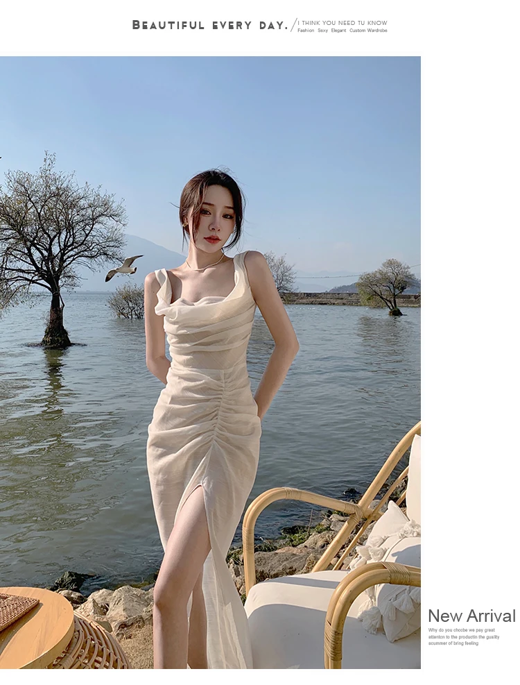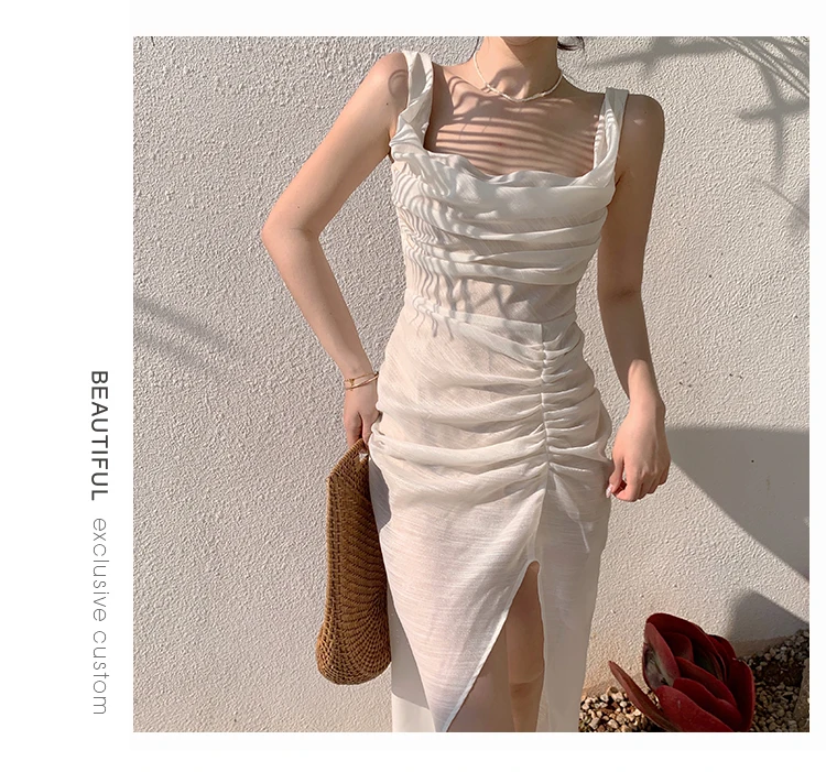 Advbridge Sweet Solid Womens Dresses Sexy Spaghetti Strap Sleeveless Bodycon Birthday Party Midi Dress Summer Femme Holiday Beach Vestidos