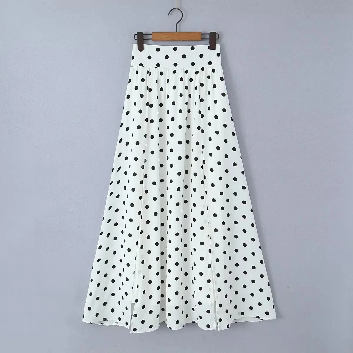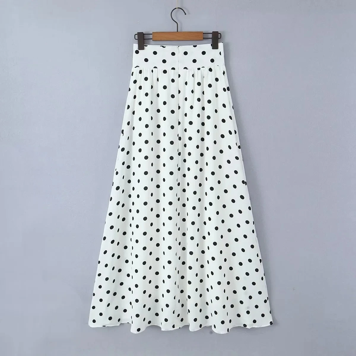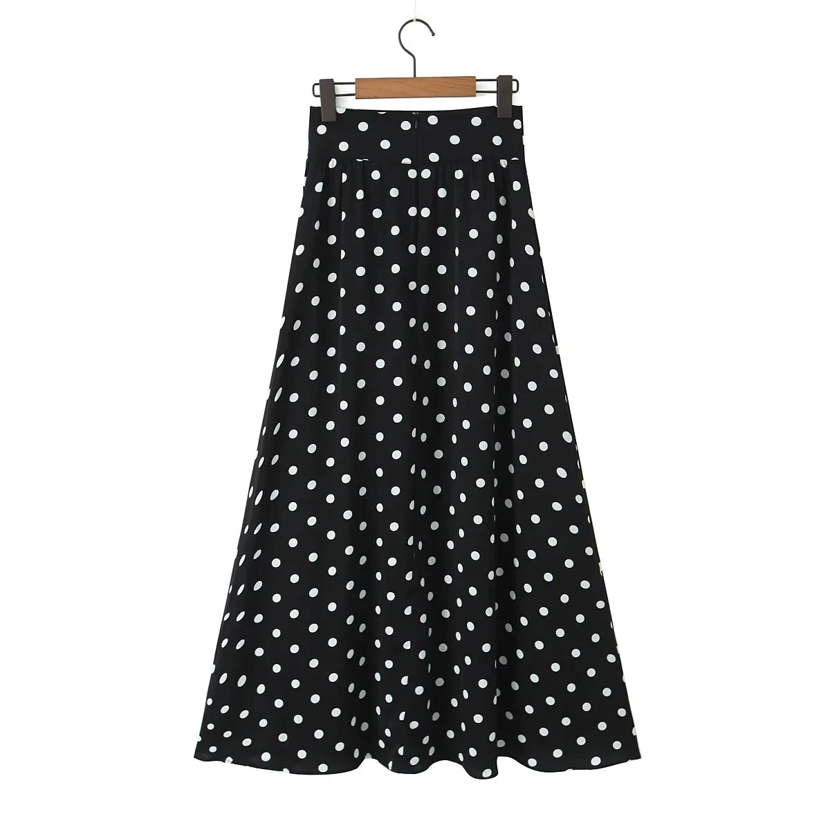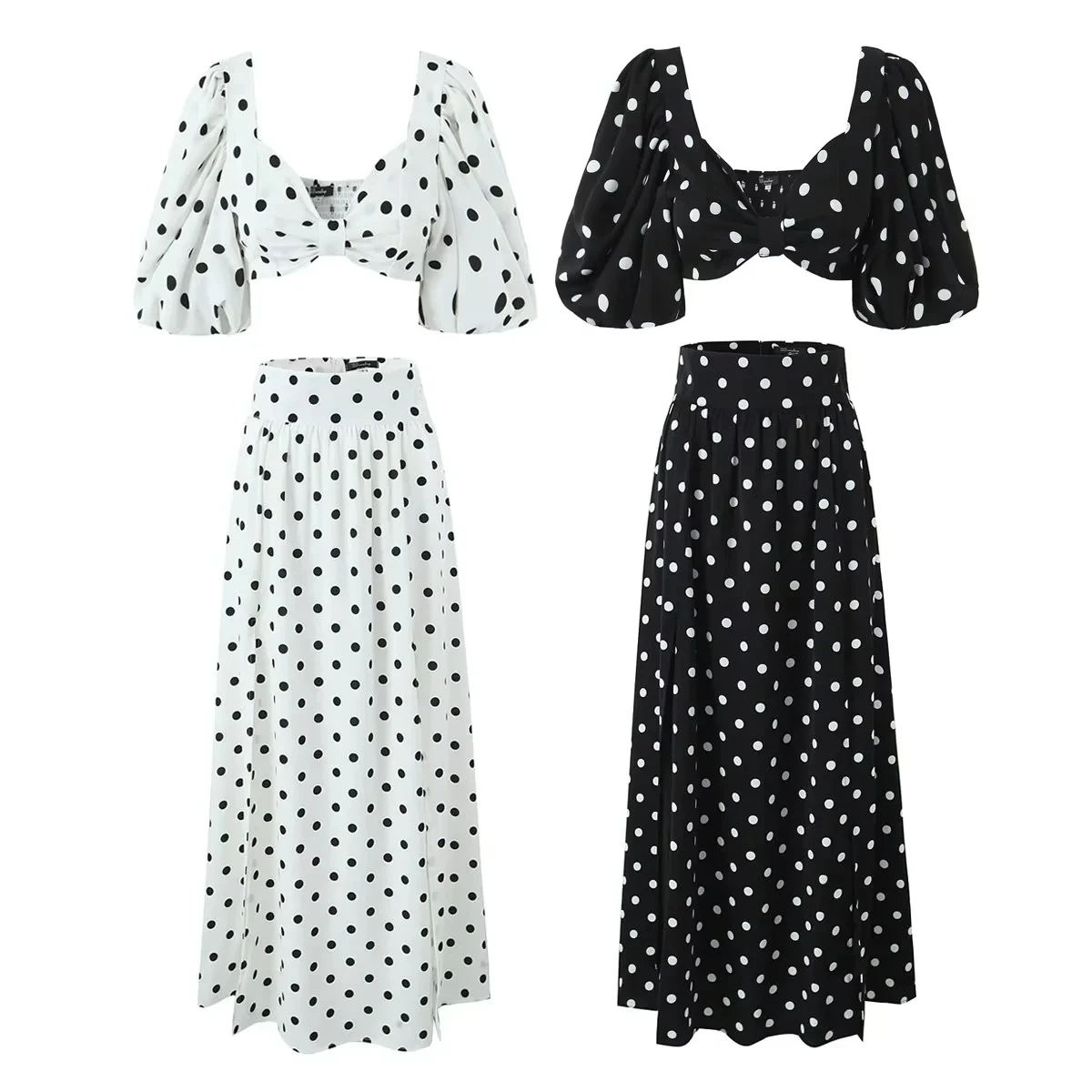 Advbridge Vintage Polka Dots Printed 2 Pcs Set Women 2024 Summer Matching Set Maxi Skirt Beach Dress Set New Outfits Holiday Robe