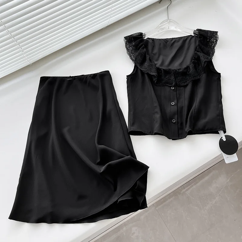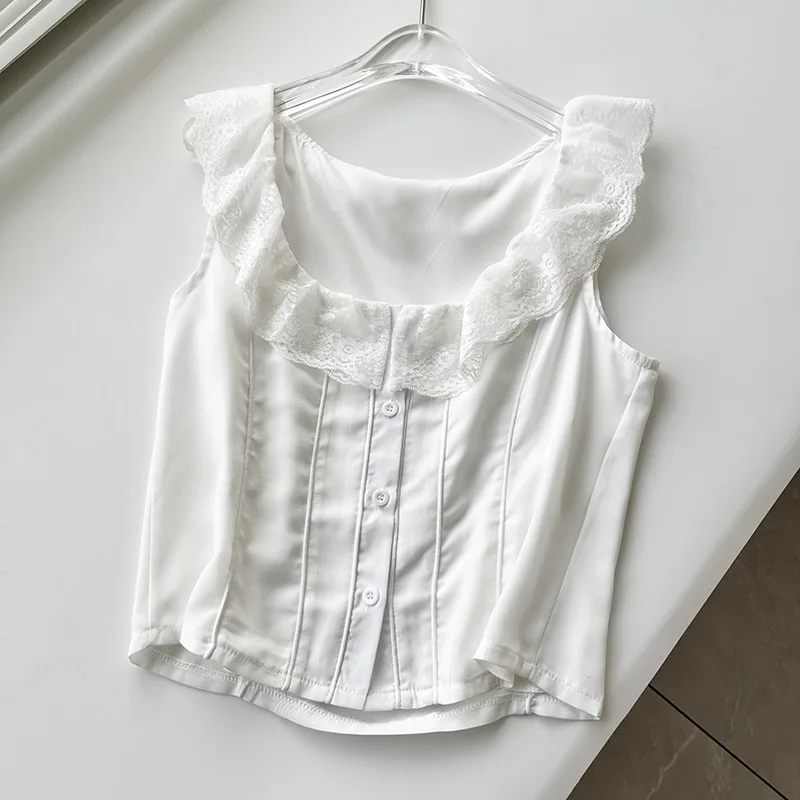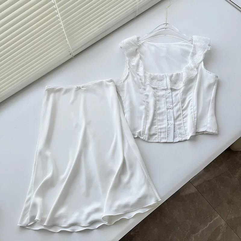 Advbridge White Lace Summer Women Set Sleeveless Crop Top+midi Skirt Outfits 2024 Beach Holiday Chic Vintage Sundress Dress Set