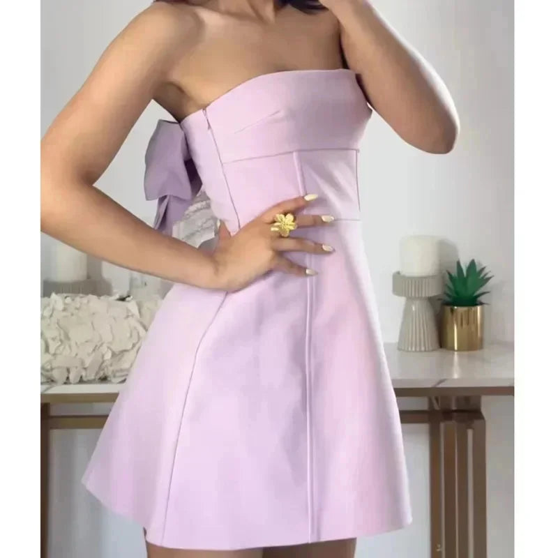 Sexy Off Shoulder A-line Mini Dress Women Strapless Backless Bow Party Dresses 2024 Chic Elegant Sleeveless Pink Short Vestidos