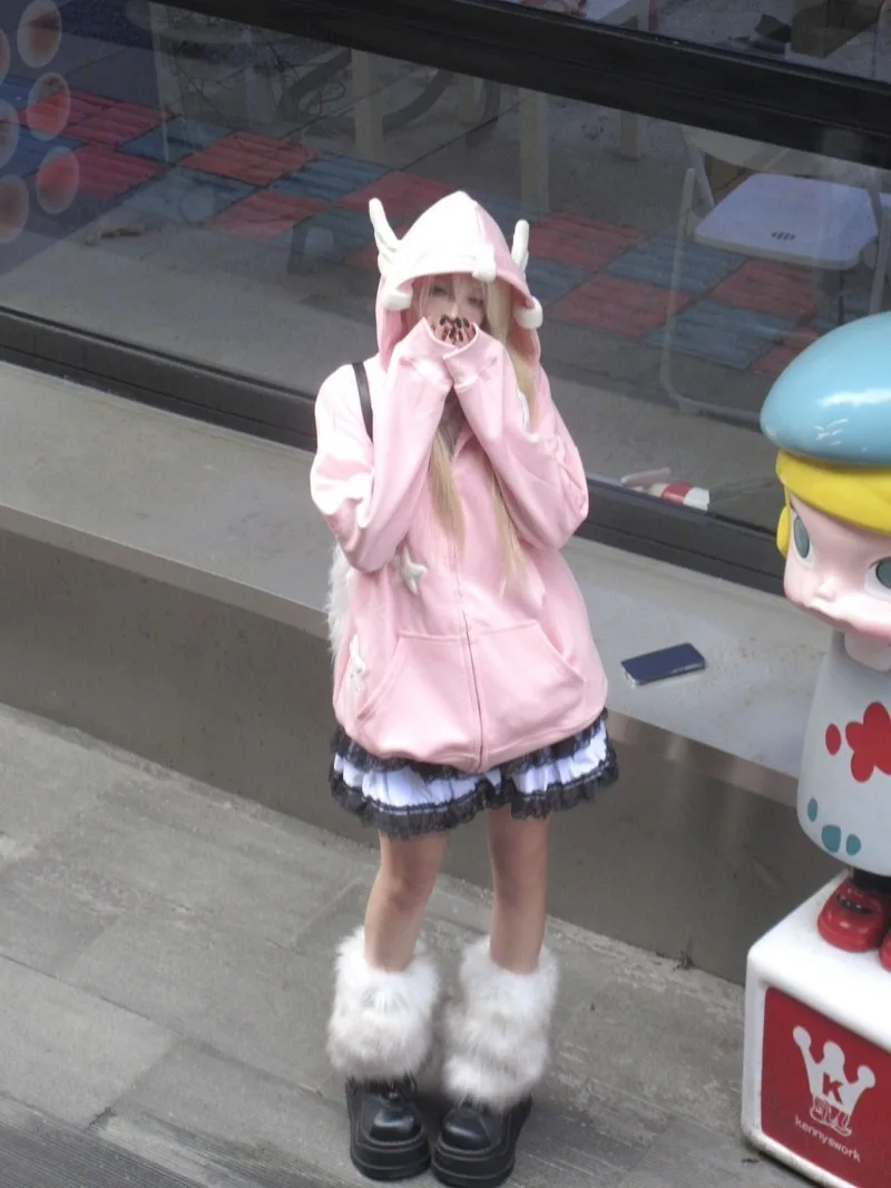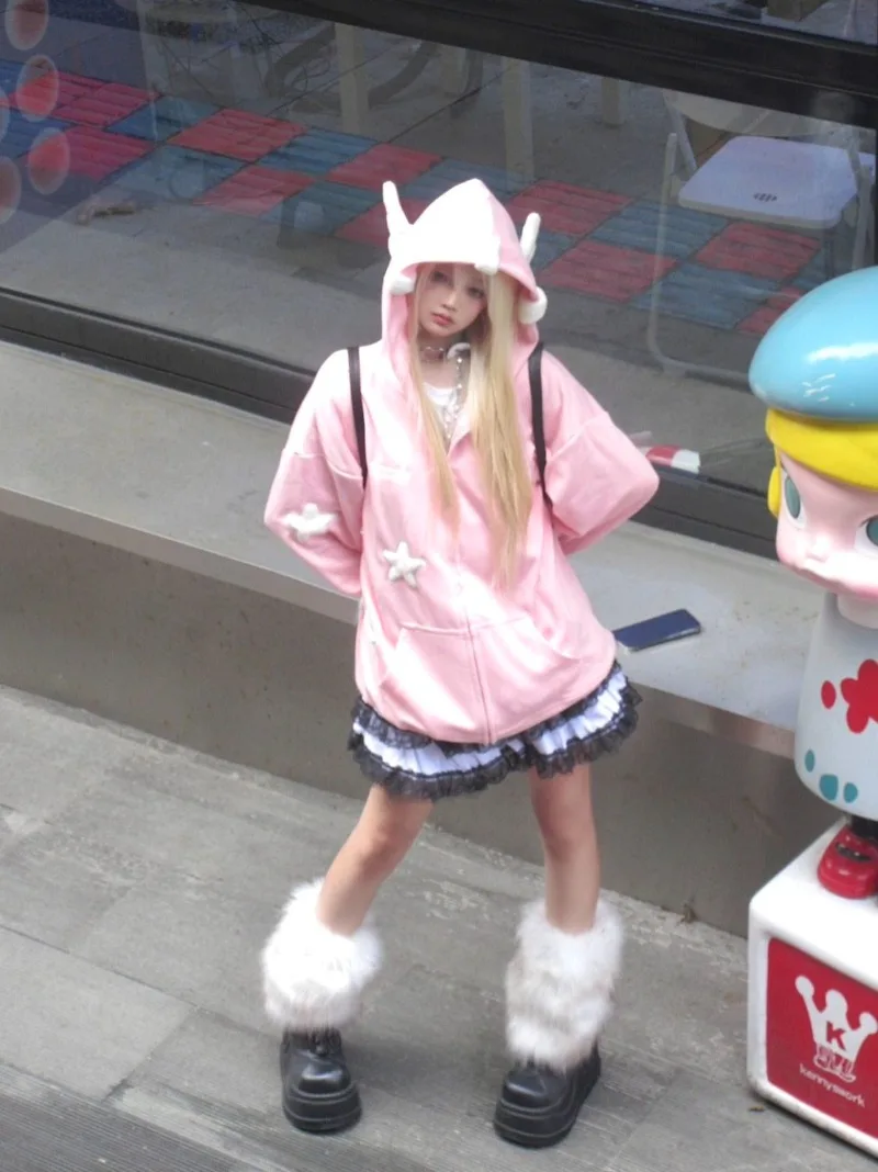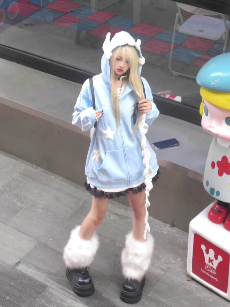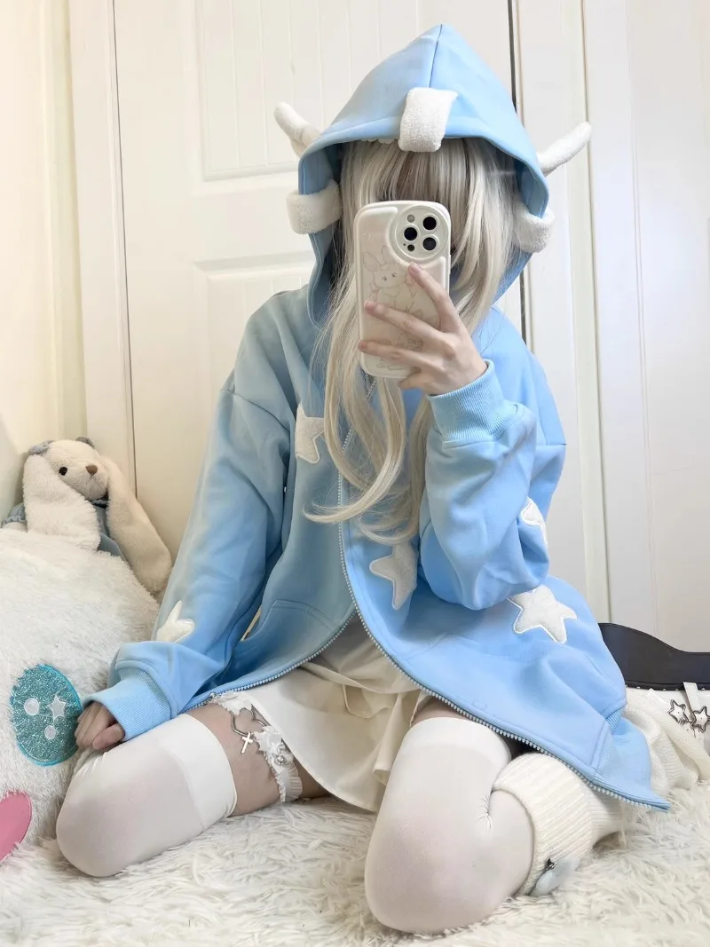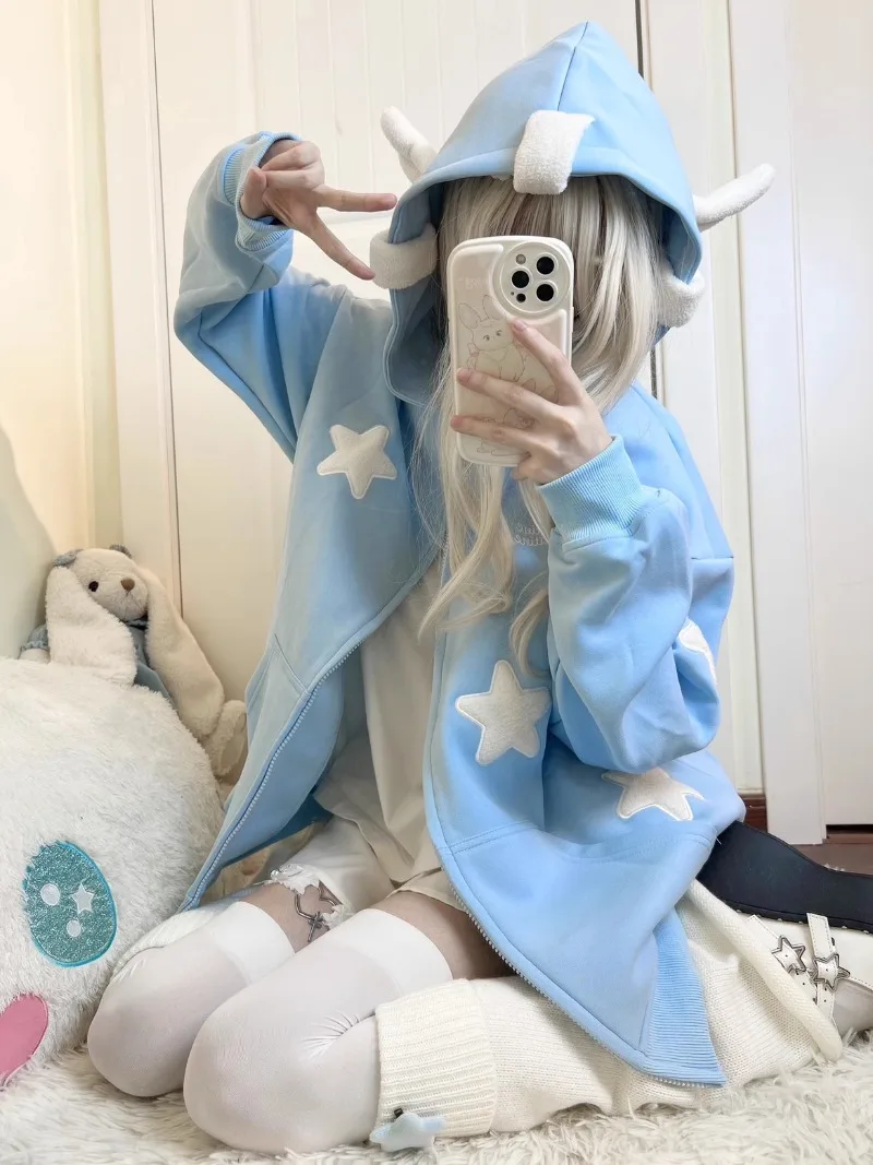 Advbridge Japanese Y2K Zip Up Blue Hoodie Women Harajuku Kawaii Angel Wings Pink Sweatshirts Oversized Subculture Star Black Jacket