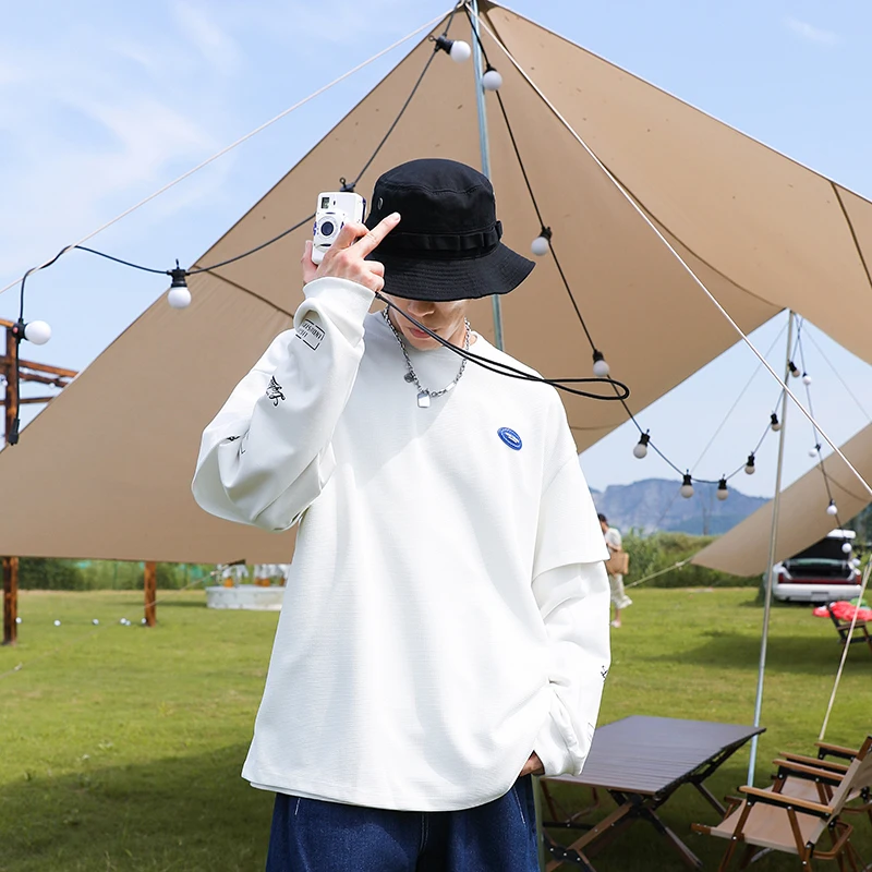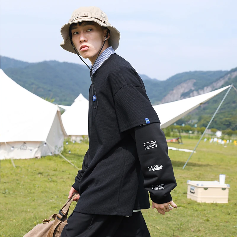 Advbridge Men's Clothing Cotton Sweatshirt Hip Hop Chic Striped Harajuku Sweatshirts Oversized Patchwork sleeves Retro Korean Hoodie
