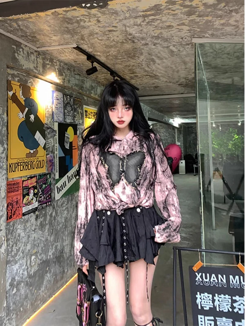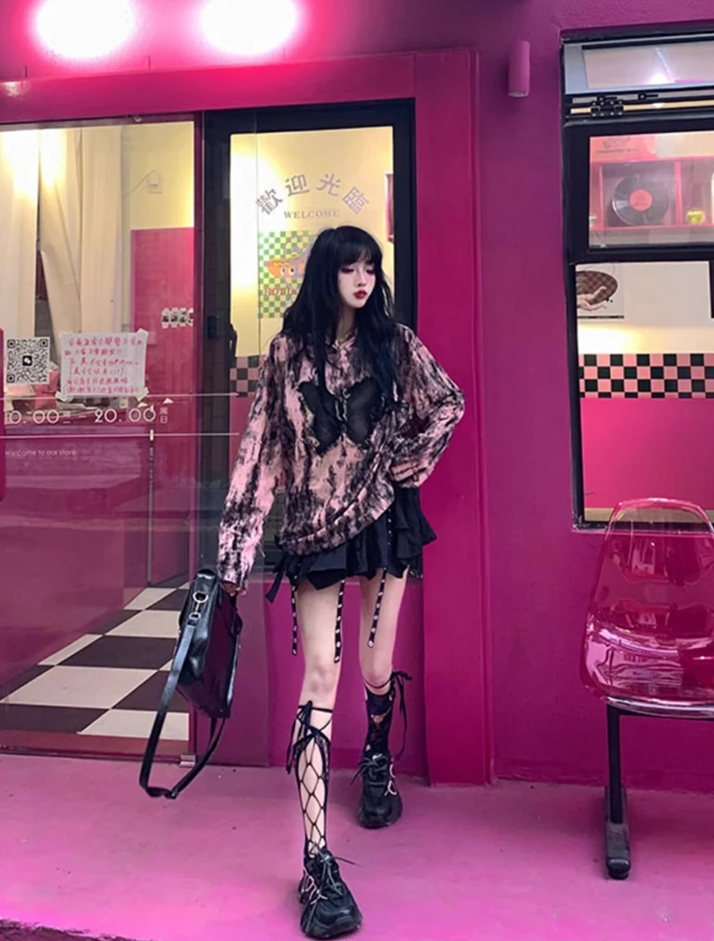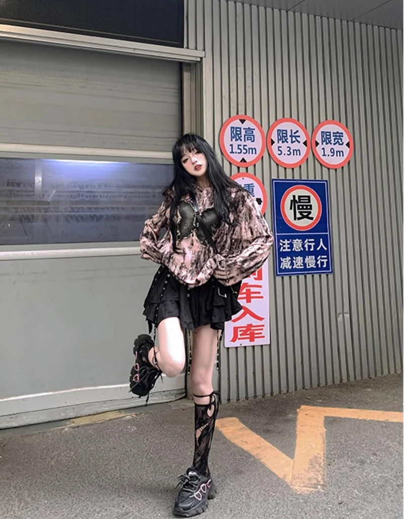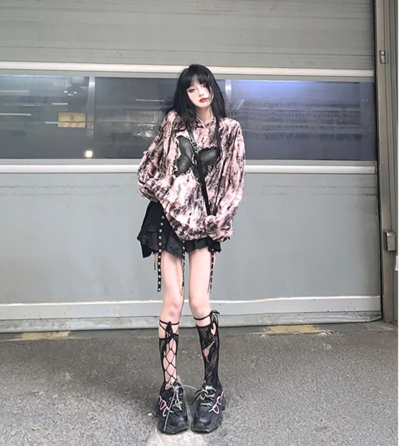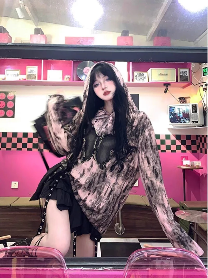 Advbridge Street Retro Oversized Sweatshirt Women Gothic Dark 2000s Clothes y2k Hoodie Woman Punk Harajuku Long Sleeve Tee Shirt Femme