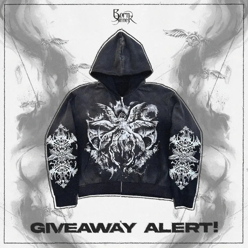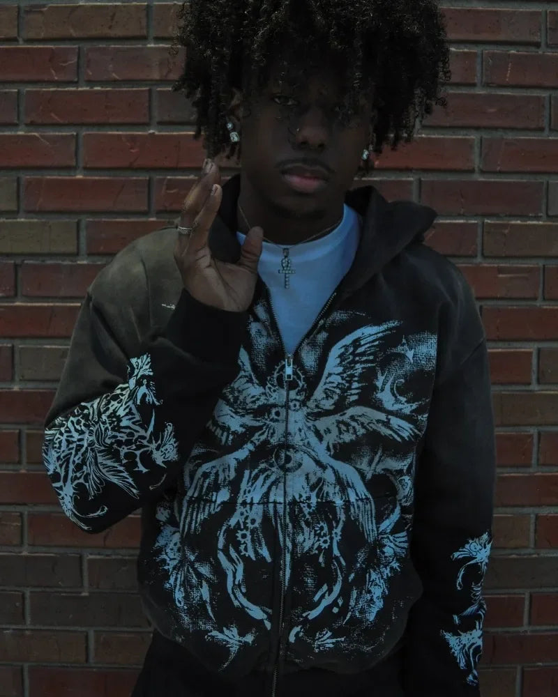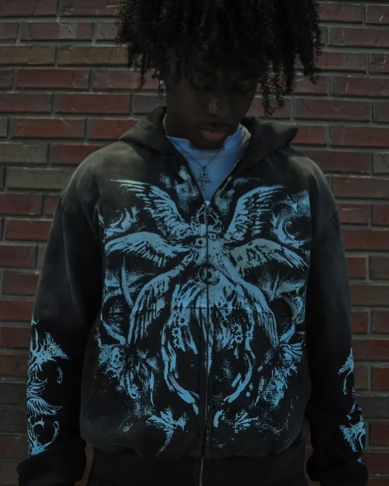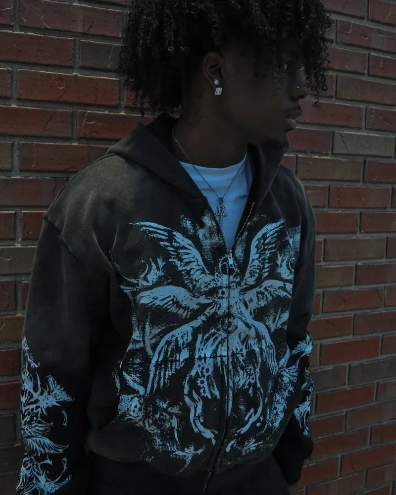 Advbridge American Devil Cartoon Letter Print Oversized Hoodie Men's Y2K Streetwear Retro Loose Casual Versatile Zipper Sweatshirt Women's