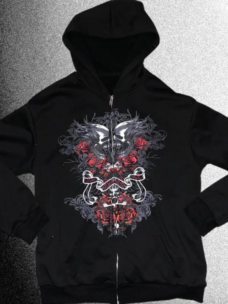 Advbridge Y2k hip-hop goth trendy printed zipper hoodie European and American retro loose long-sleeved streetwear for men and women