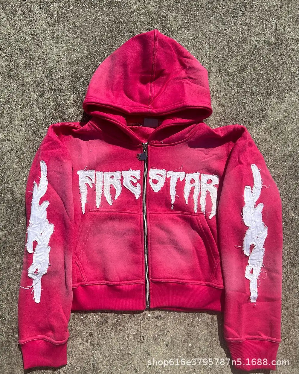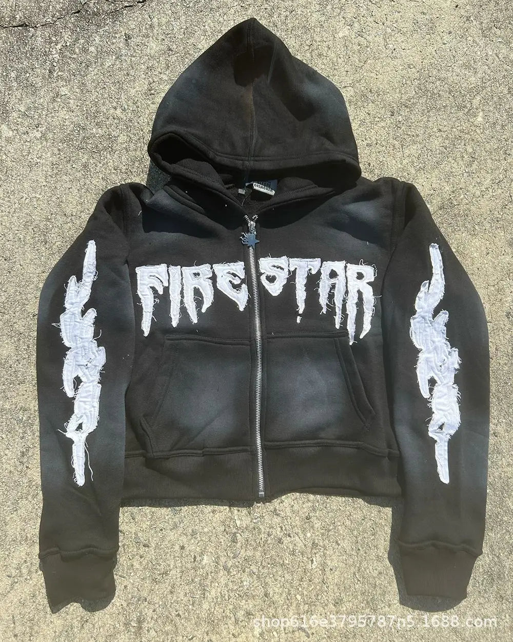 Advbridge Y2k Long Sleeved Pullover Hoodie Vintage Zipper Embroidered 3d Pattern Sweatshirt Streetwear Tops Winter Boots School Outfit New