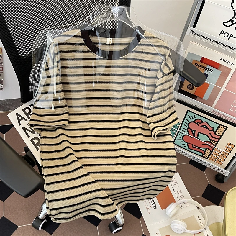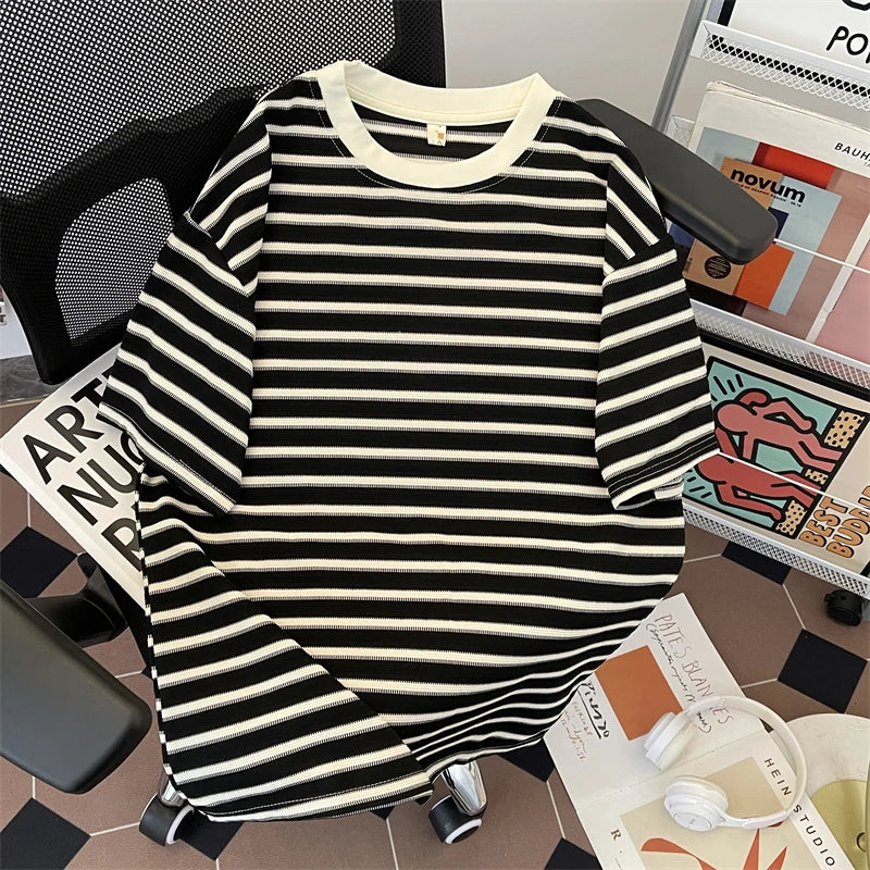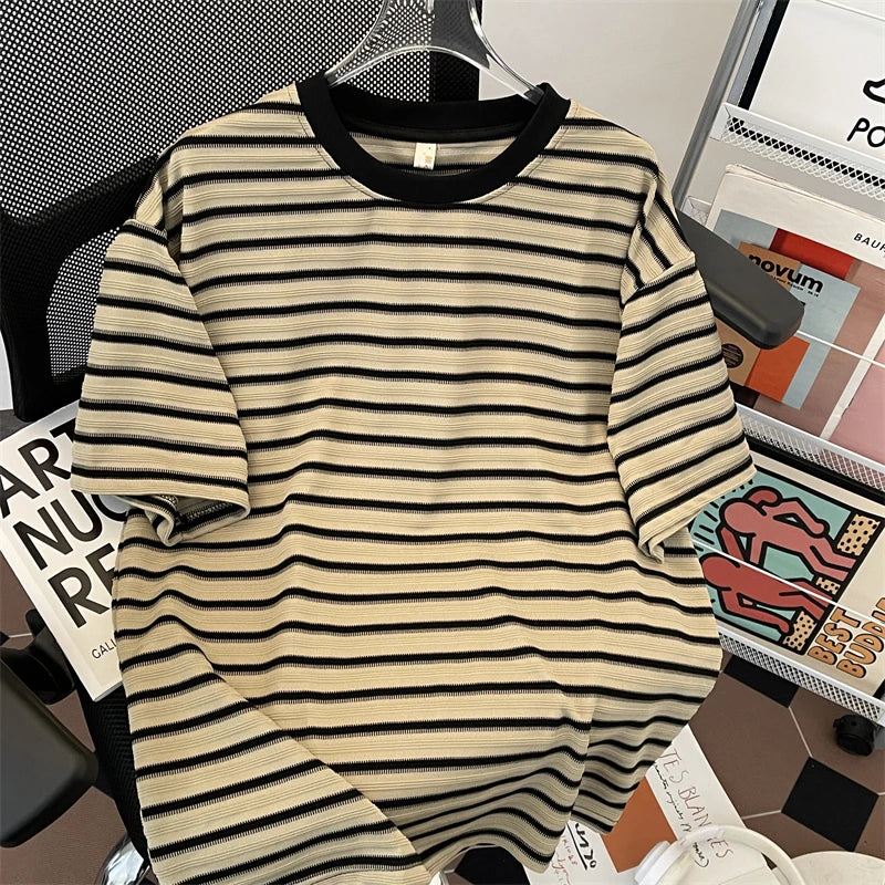 Advbridg  Japanese Cityboy Striped T-shirt Summer American Street Short Sleeve Men's Tees 2025 New O-neck Loose Couple Versatile Tops