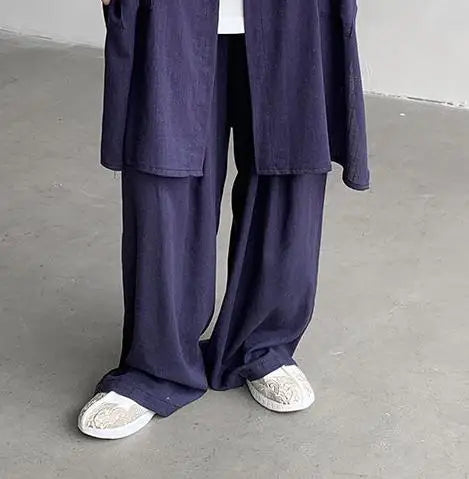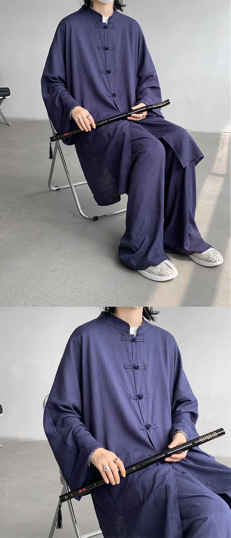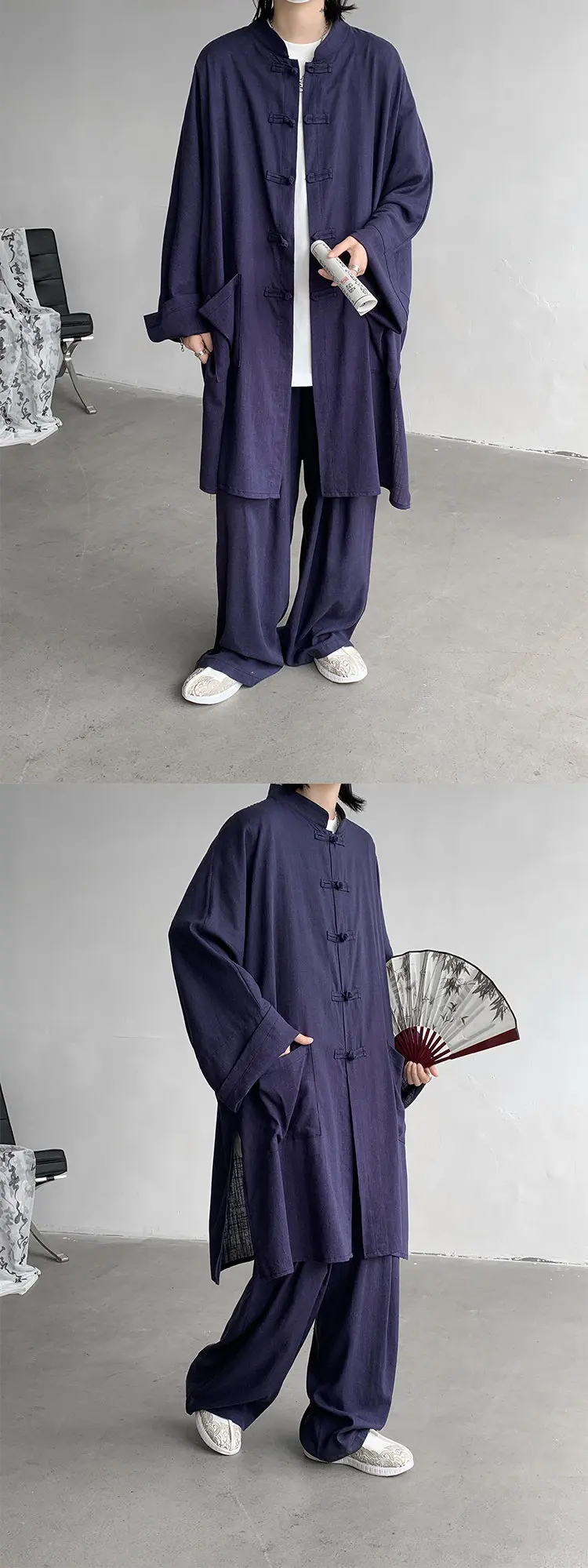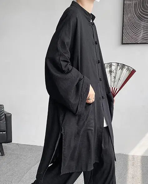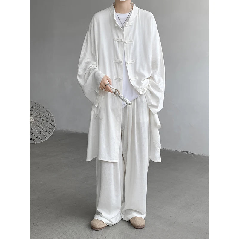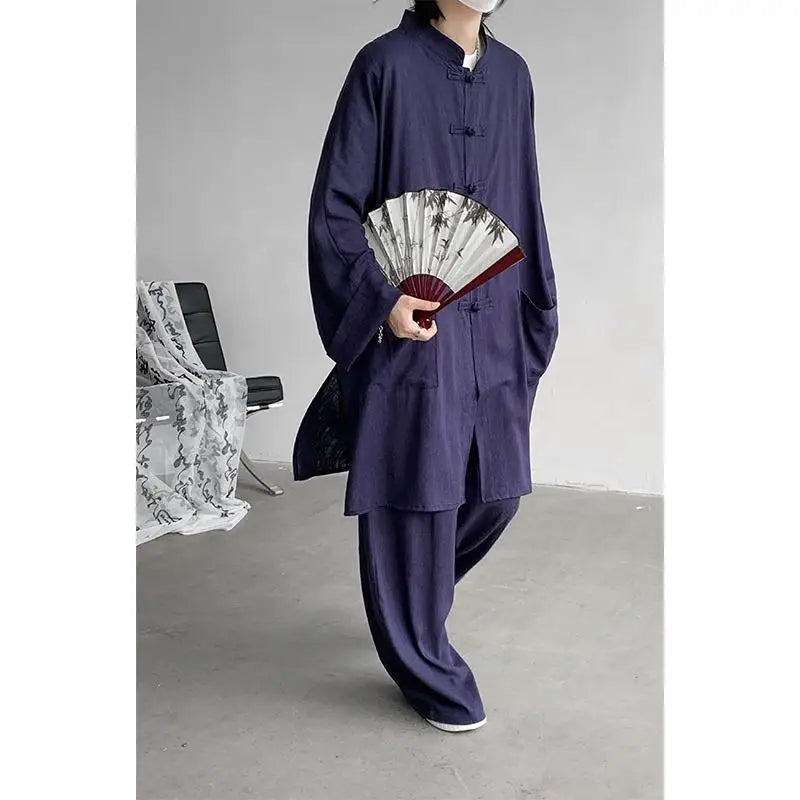 ADVBRIDGE  - M-5XL Plus Size Men Chinese Tang Suit Tai Chi Set Kung Fu Long Sleeve Shirt and Pants Uniform Knot Buttons Long Shirt Man XXXXXL