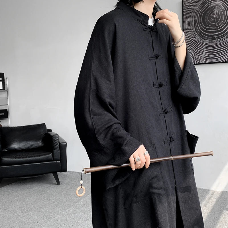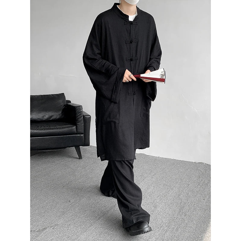Advbridg  M-5XL Plus Size Men Chinese Tang Suit Tai Chi Set Kung Fu Long Sleeve Shirt and Pants Uniform Knot Buttons Long Shirt Man XXXXXL