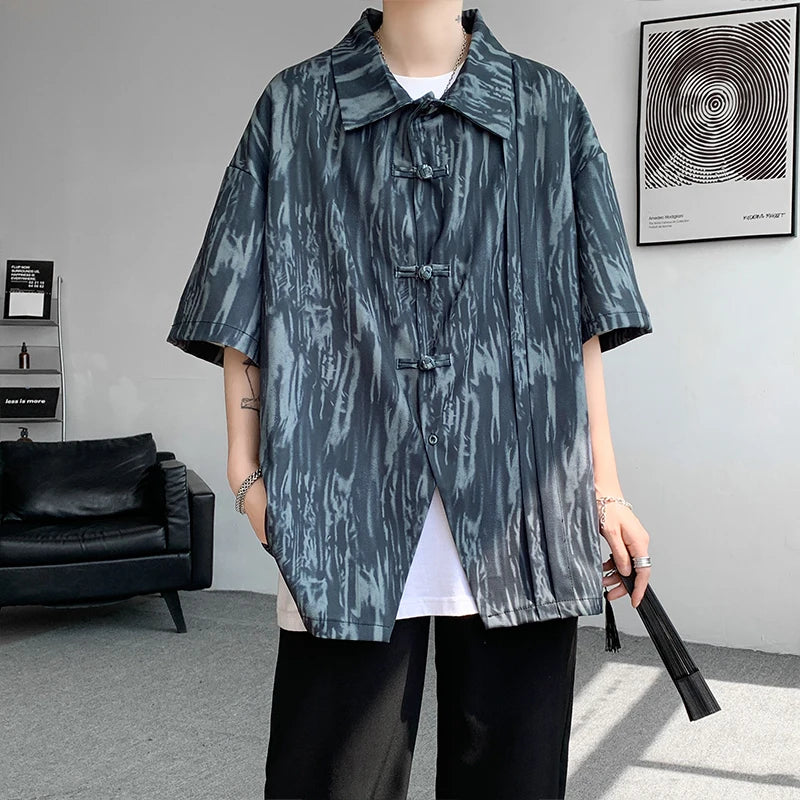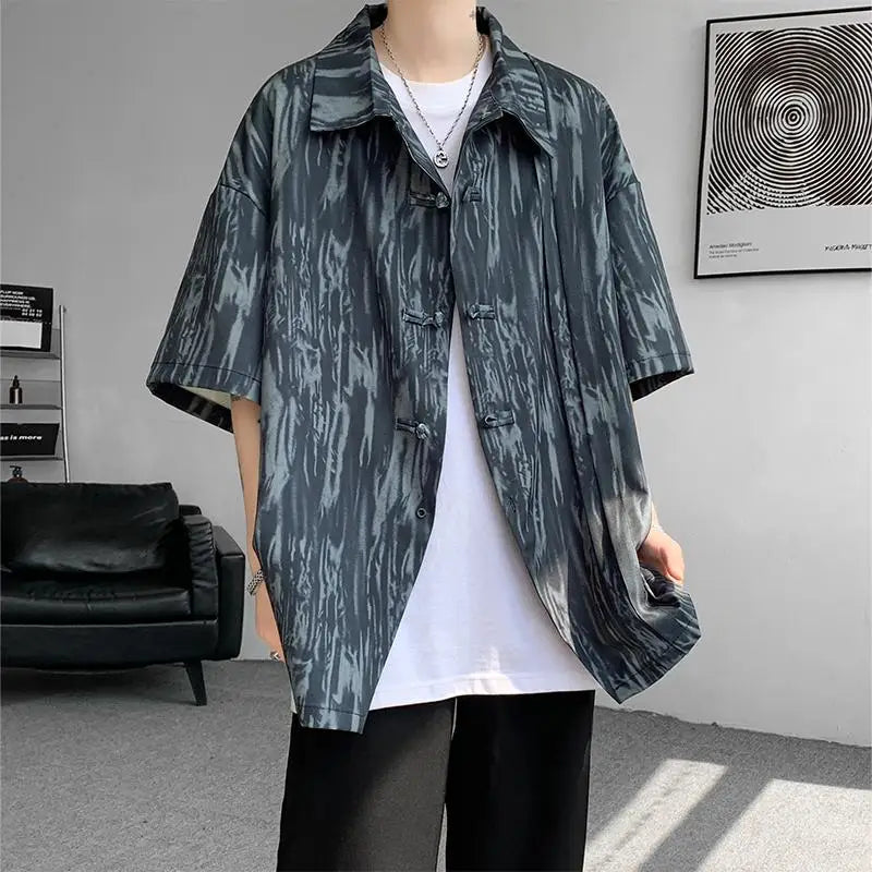 Advbridg M-5XL Plus Size Men's Chinese Traditional Shirt Tai Chi Kung Fu Turn Collar Knot Button Shirt Short Sleeve Summer Clothing Male