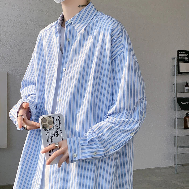 Advbridg M-5XL Plus Size Men's Striped Long Sleeve Shirt Loose Fit Button Up Tops For Office Dinner Party Single Breasted Autumn Clothing