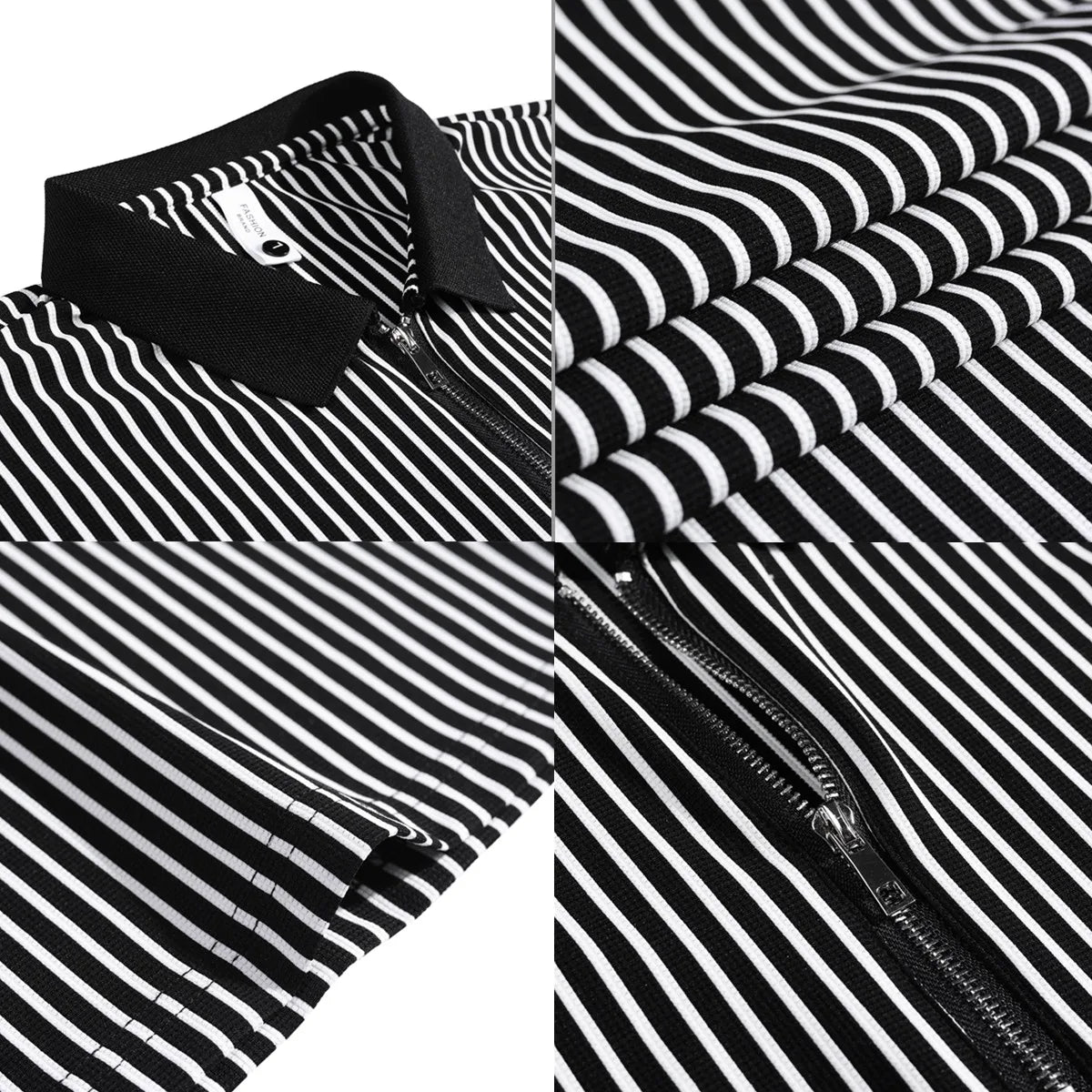 ADVBRIDGE - Men Pinstripe Polo Shirt - Summer Business Casual Half-Zipper Turn-Down Collar Versatile Short Sleeve Top Stylish Everyday Wear