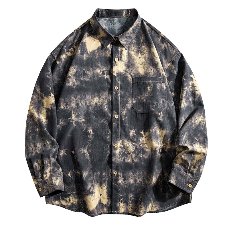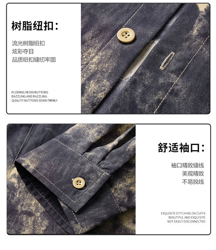 Advbridg  Men's Beach Travel Shirt Personalized Trendy Lapel Floral Pattern Printed Long-sleeved Vacation Casual Inch Clothes Shirt