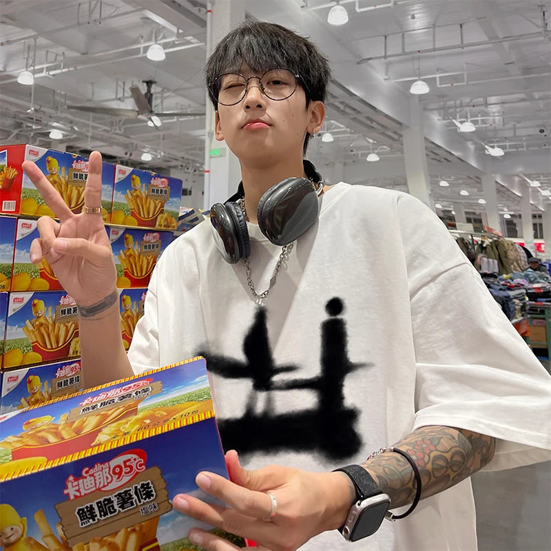 Advbridg Men's T-shirt Cotton Casual Streetwear Funny Design Print Summer Loose Cool O-neck T Shirt for Men T-shirt Male Tee Plus Size