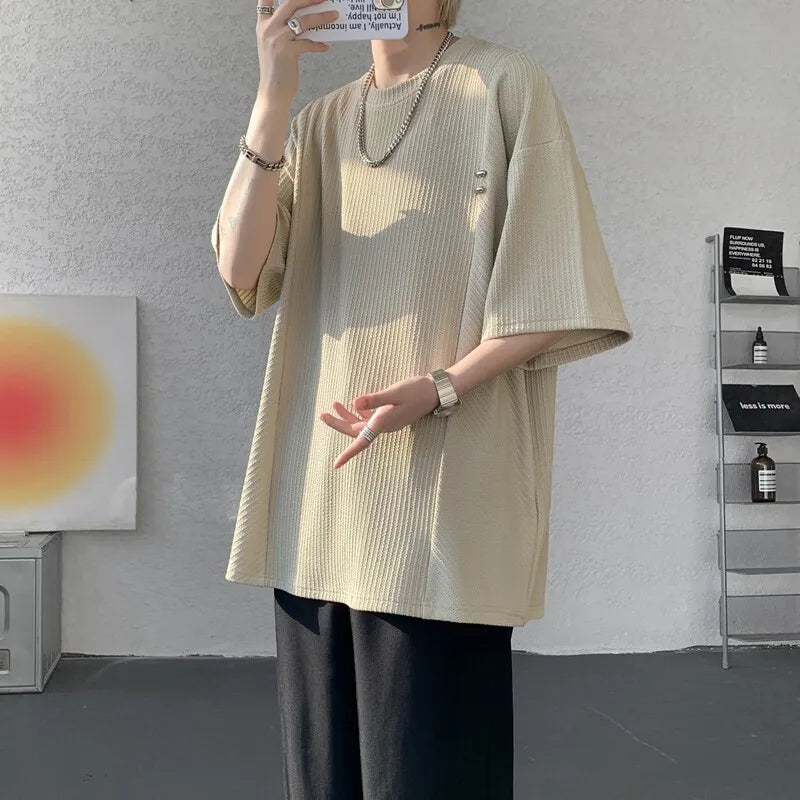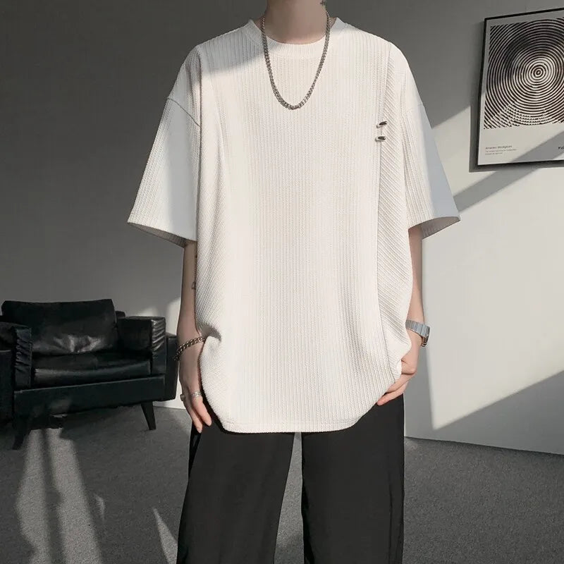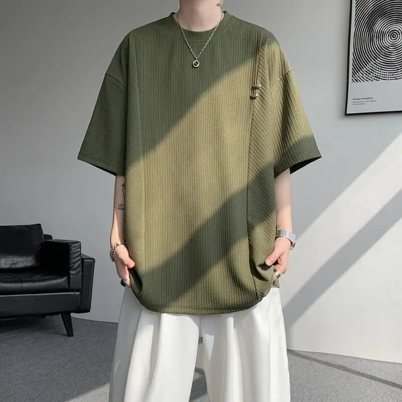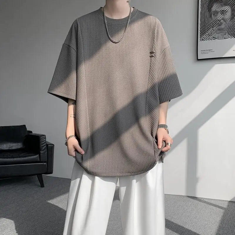 Advbridg Men's Textured Short Sleeve T-Shirt Breathable Premium Quality Trendy Round Collar Summer Fashion Sizes Up to 8XL