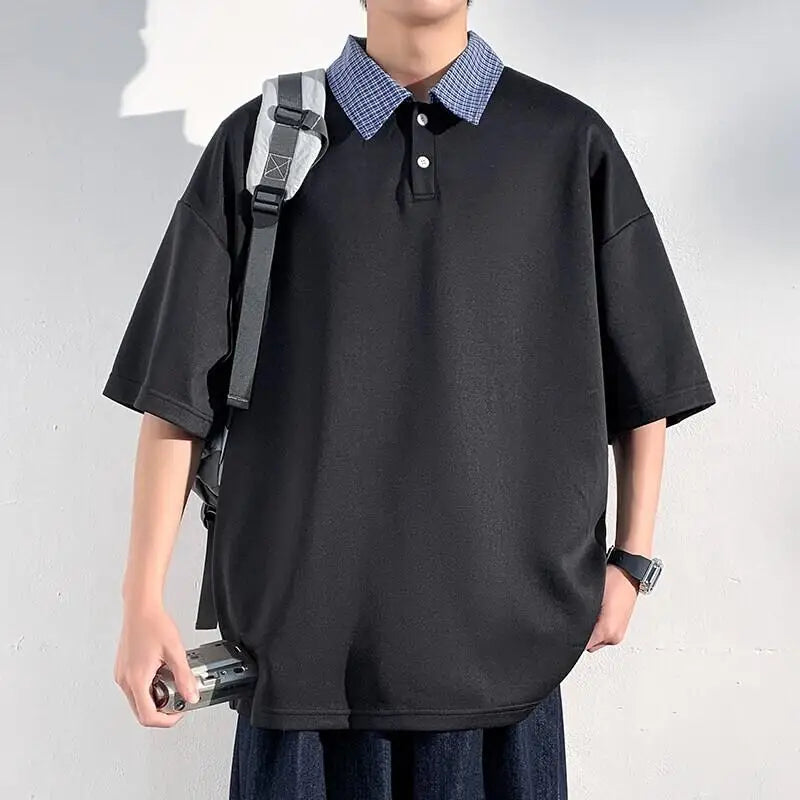 ADVBRIDGE - Plus Size Trending Plaid Henley T Shirts for Men 2025 Versatile Collar Detail & Breathable Casual Essential Summer Tops