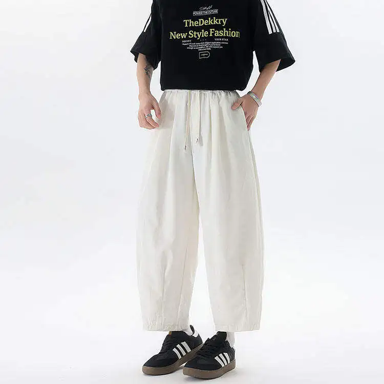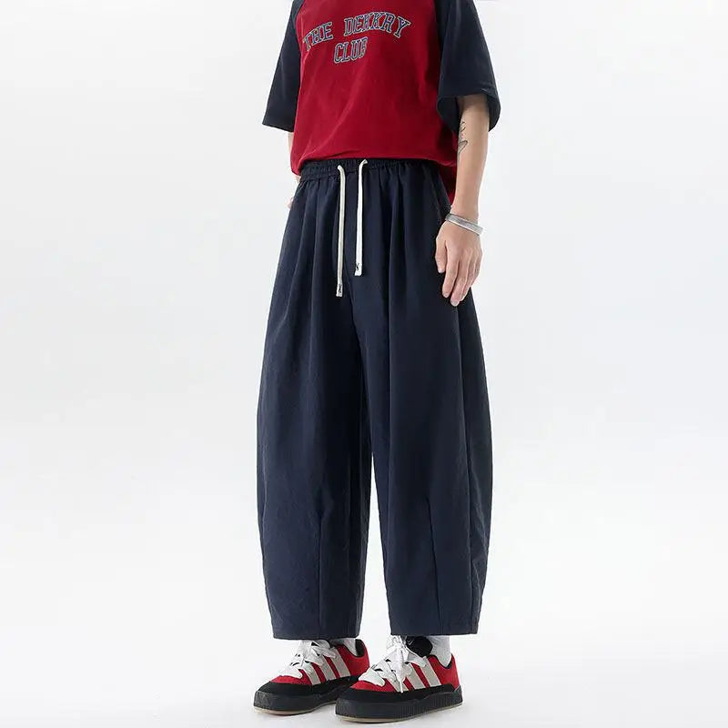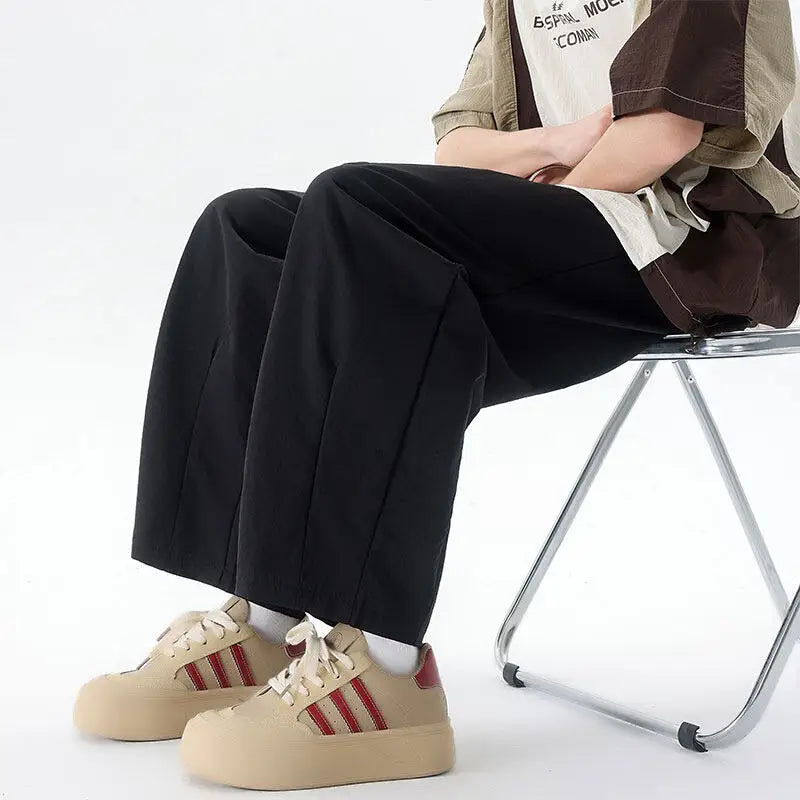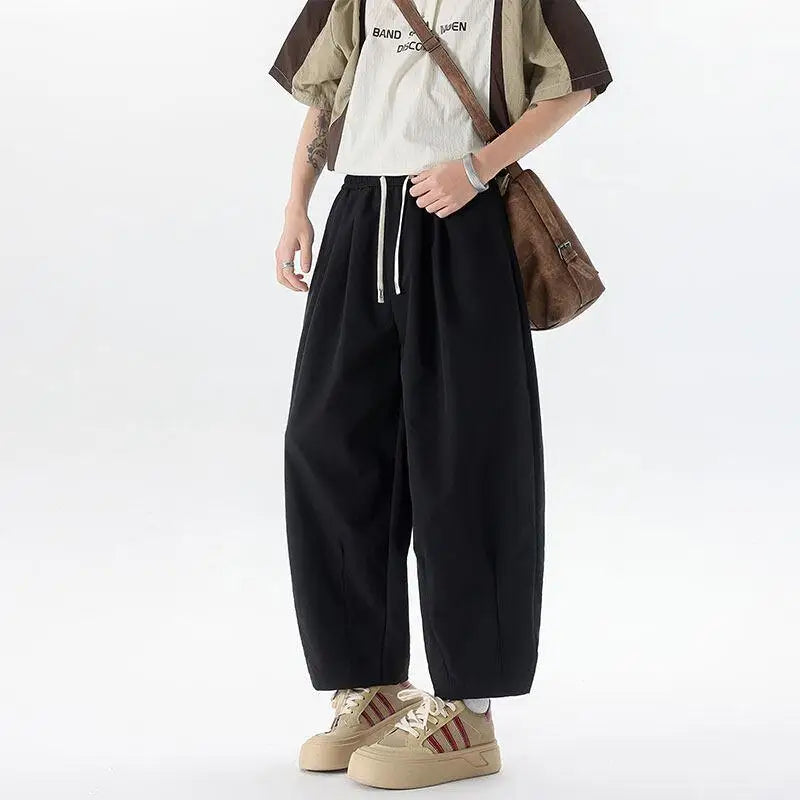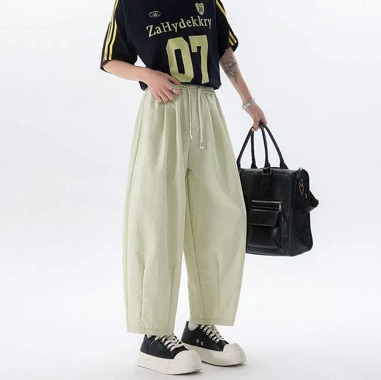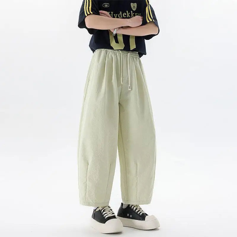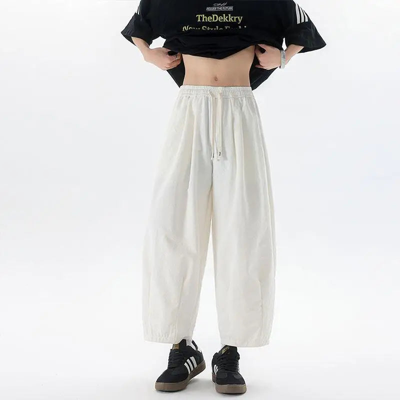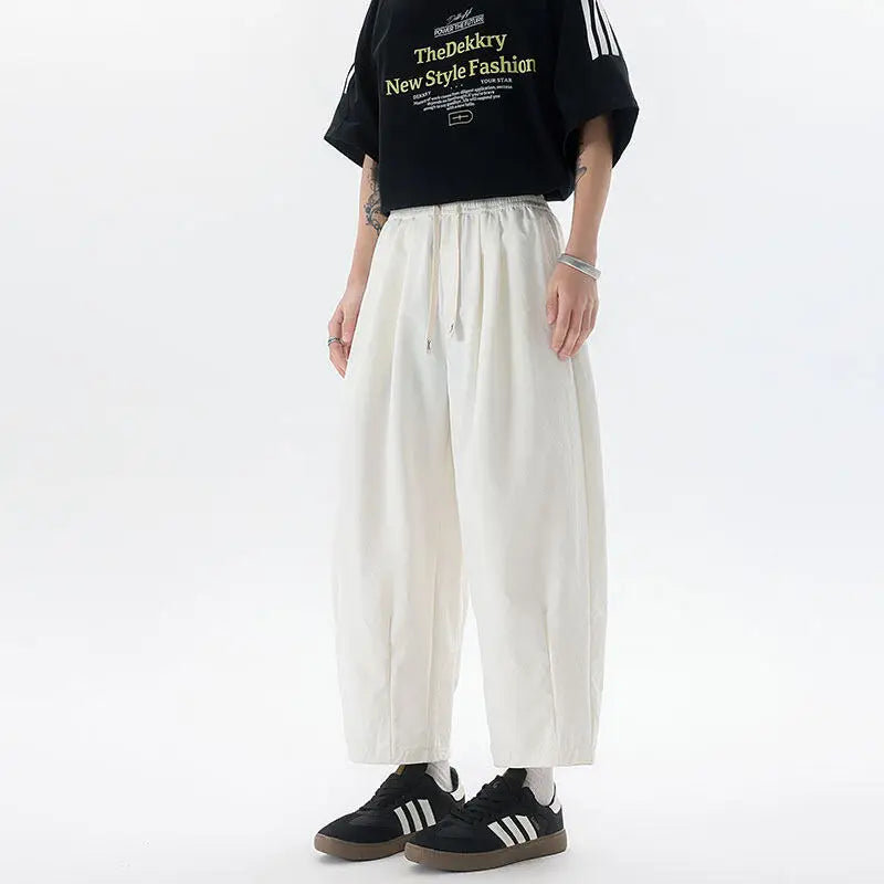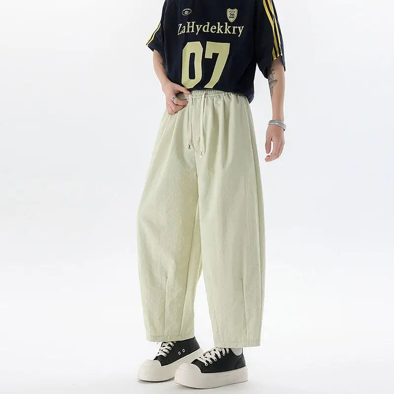 Advbridg Trendy Men's High Waist Wide Leg Ankle Pants - Office to Weekend Cropped Trousers Stretchy Waist & Lightweight Breathable Fabric