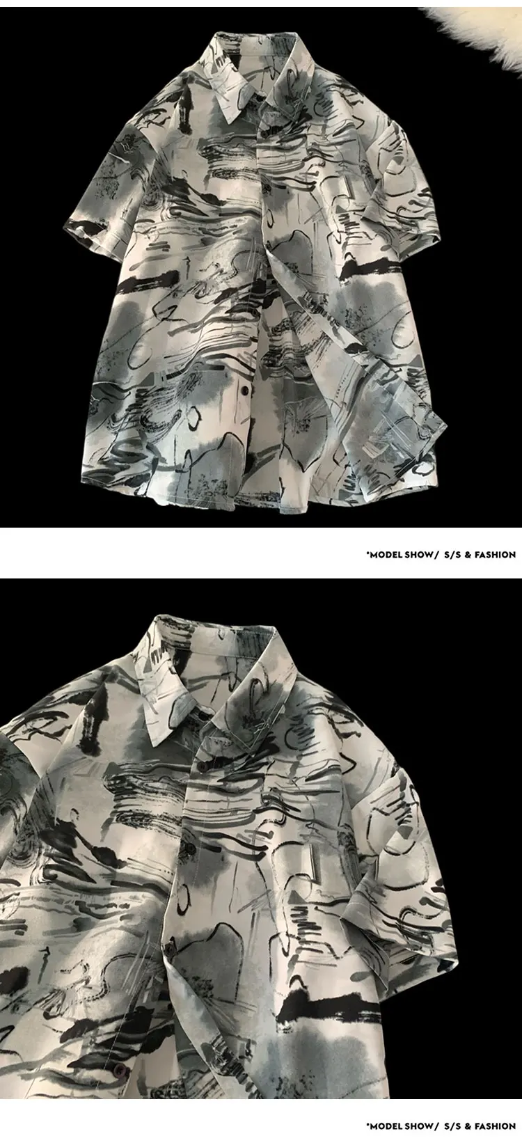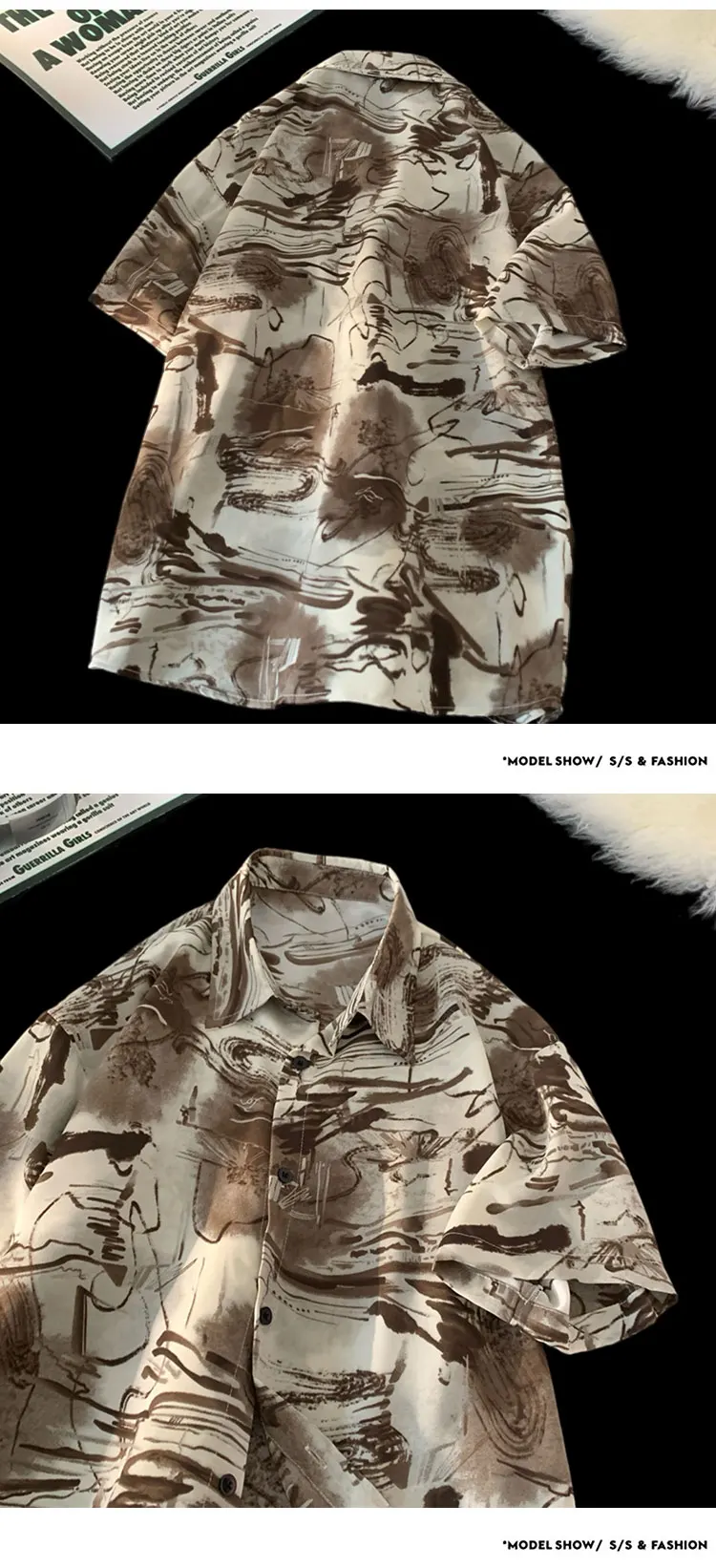 ADVBRIDGE - Trendy Men's Tie-Dye Short Sleeve Shirt - Breathable Casual Summer Top Streetwear Fashion Hawaiian Shirt for Man M-XXXXXL