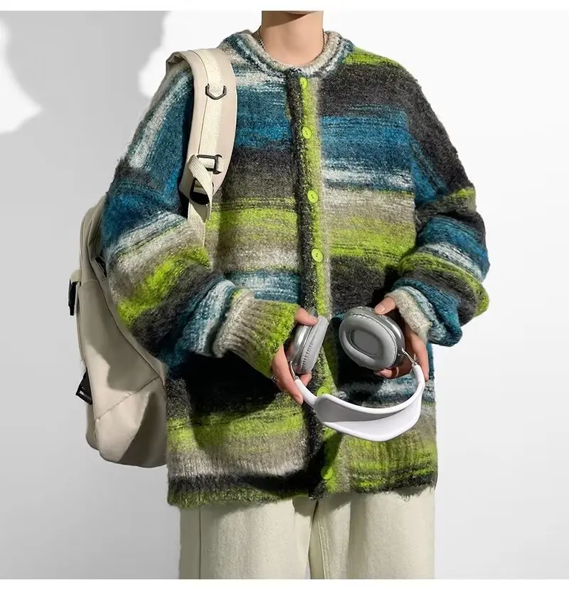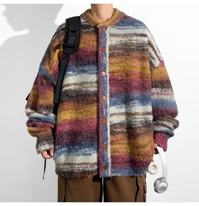 Advbridge 2024 Men Striped Sweater Casual Elastic Cardigan Men Harajuku Patchwork Knitted Warm Top Fashion Brand Male Jumper Clothes