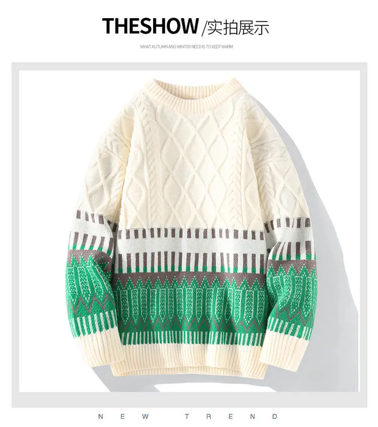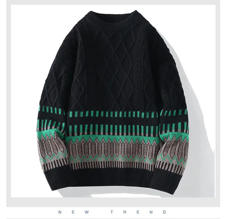 Advbridge #4346 Black Beige Vintage Streetwear Hip Hop Sweater Men Slim Knitted Pullover Homme Thick Mens Pullover Sweaters Long Sleeve