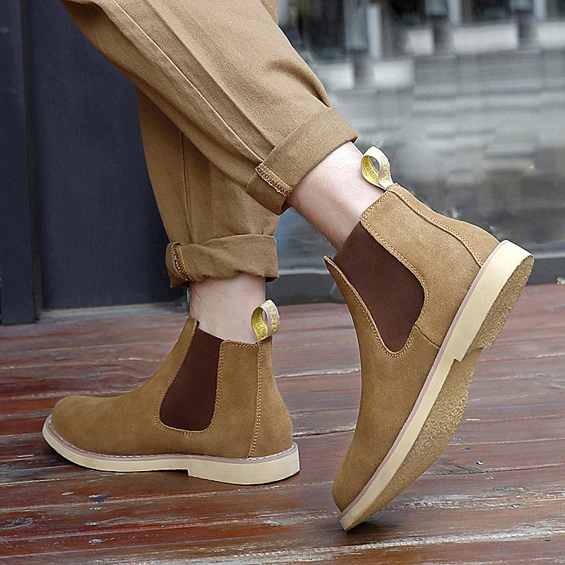 Advbridge All-match Chelsea Boots Men Motorcycle Boots Male Ankle Round Toe Business Zipper Boots Male Business Ankle Boots Big Size 37-48