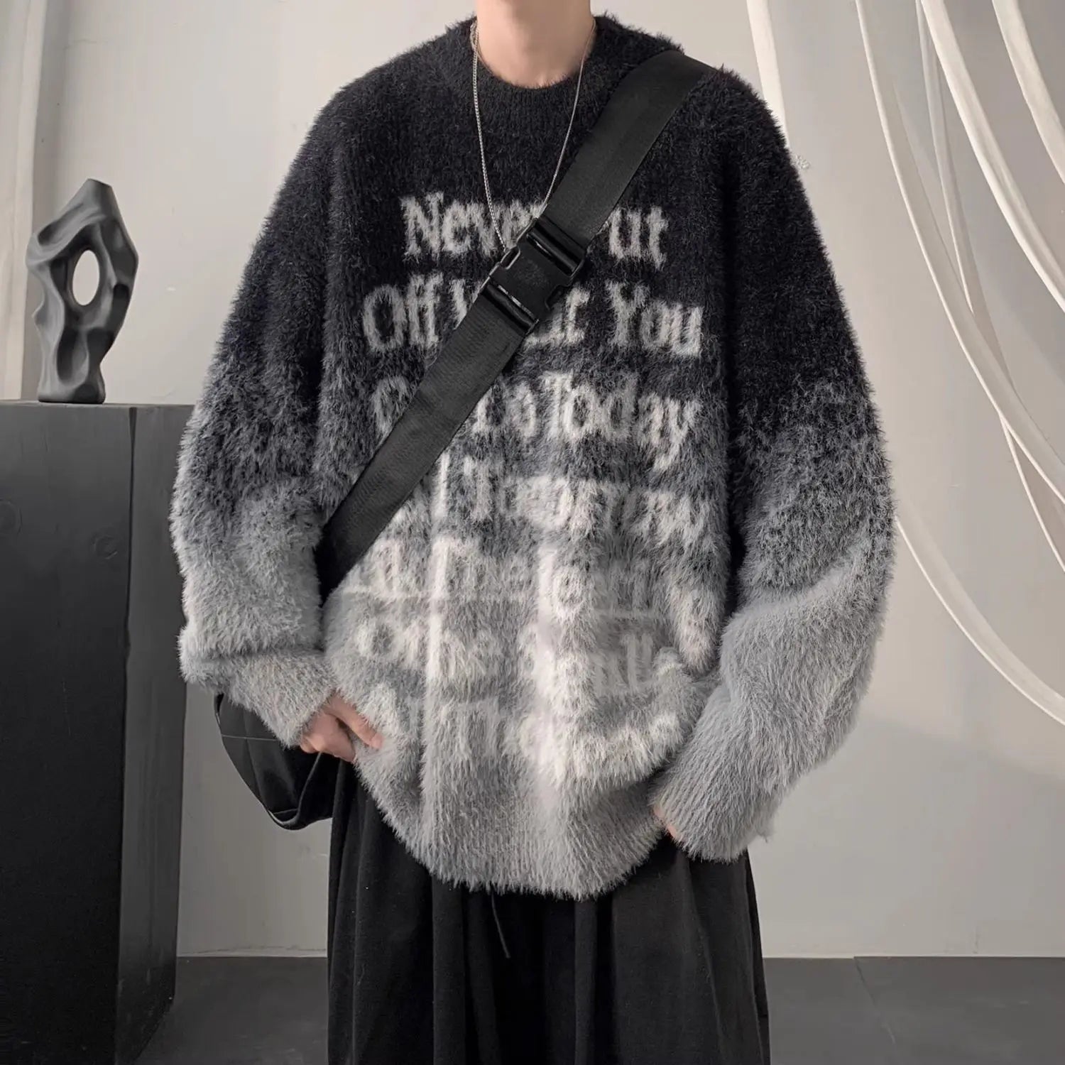 Advbridge American Letter Gradient Couple Sweater Men's Thick Warm Round Neck Teenagers' High-end and Cool Knit Sweater