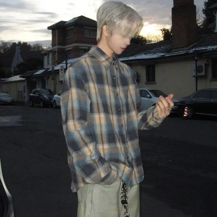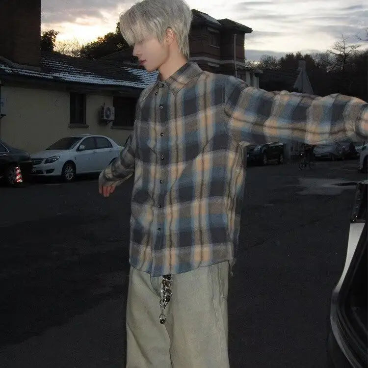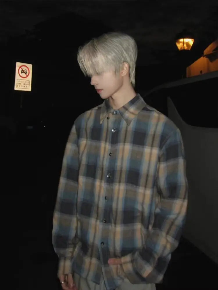 Advbridge American Retro Blue Checkered Shirt for Men Small Fragrance Style Inner Layer Shirt High-end Jacket