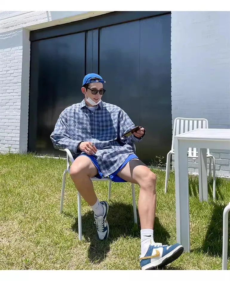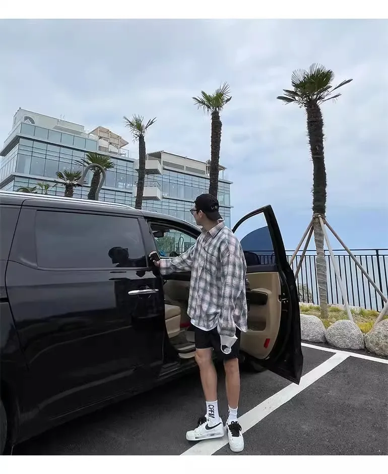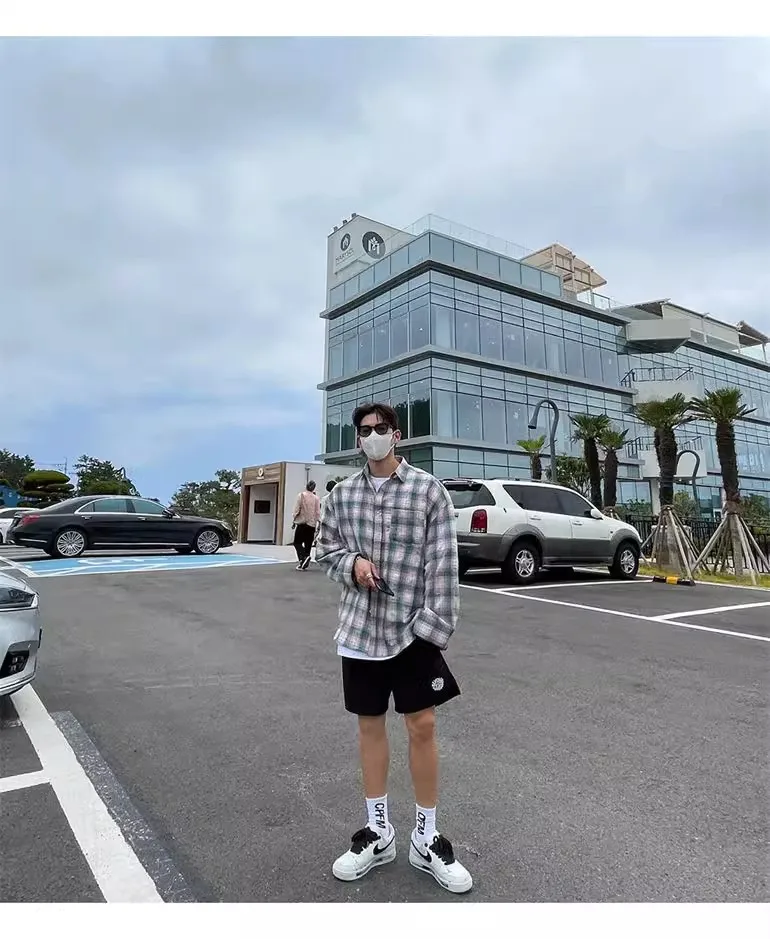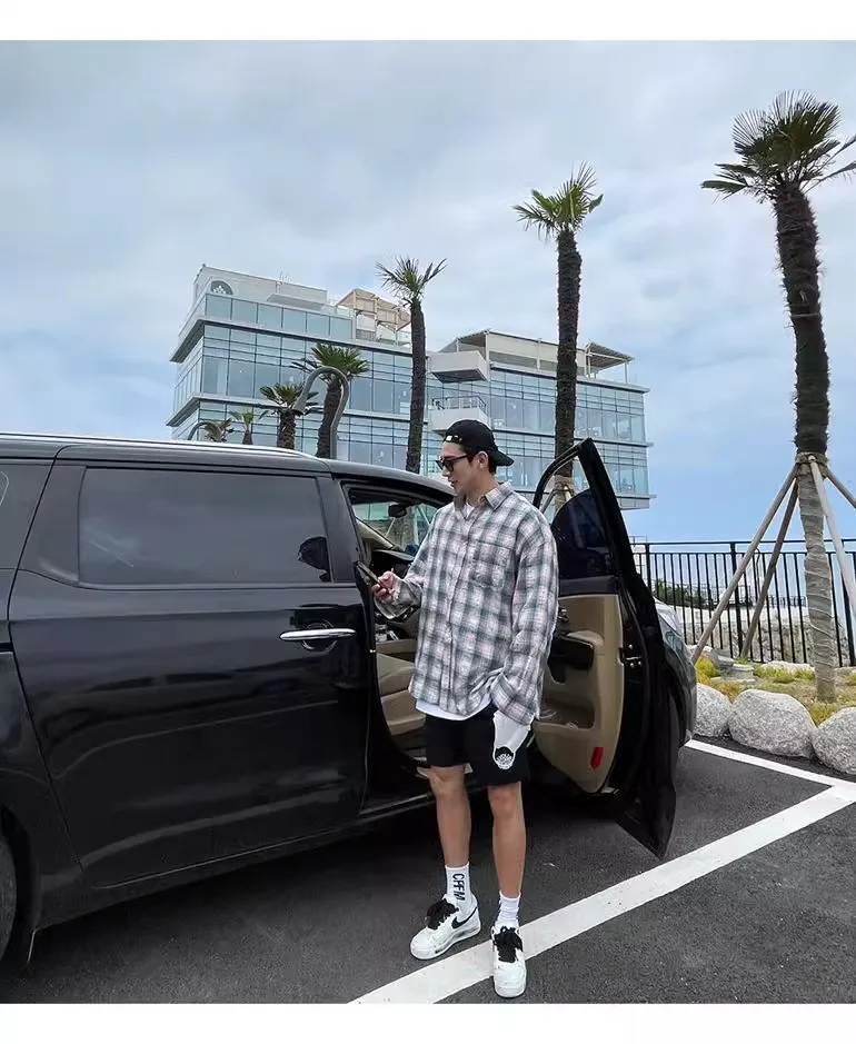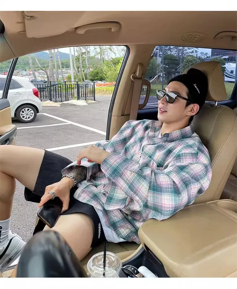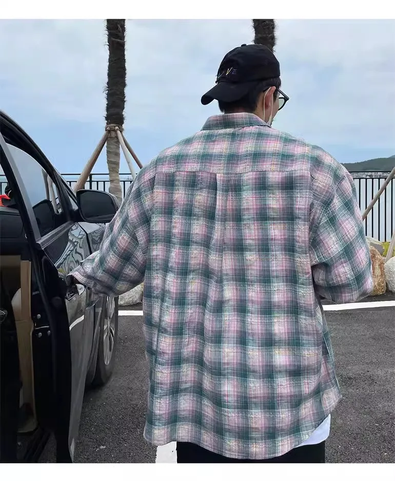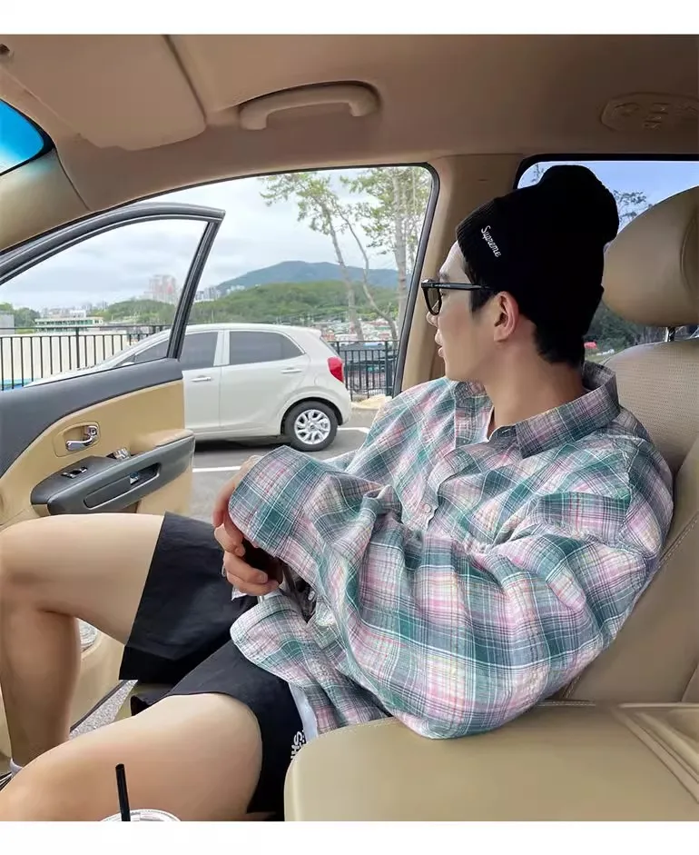 Advbridge American Retro Plaid Shirt Coat, Men's Fashion Brand Loose Leisure All-Matching Couple Long Sleeve Top, Pink Shirt
