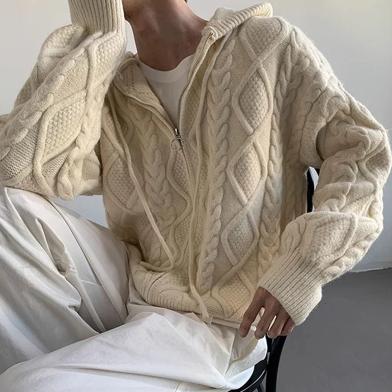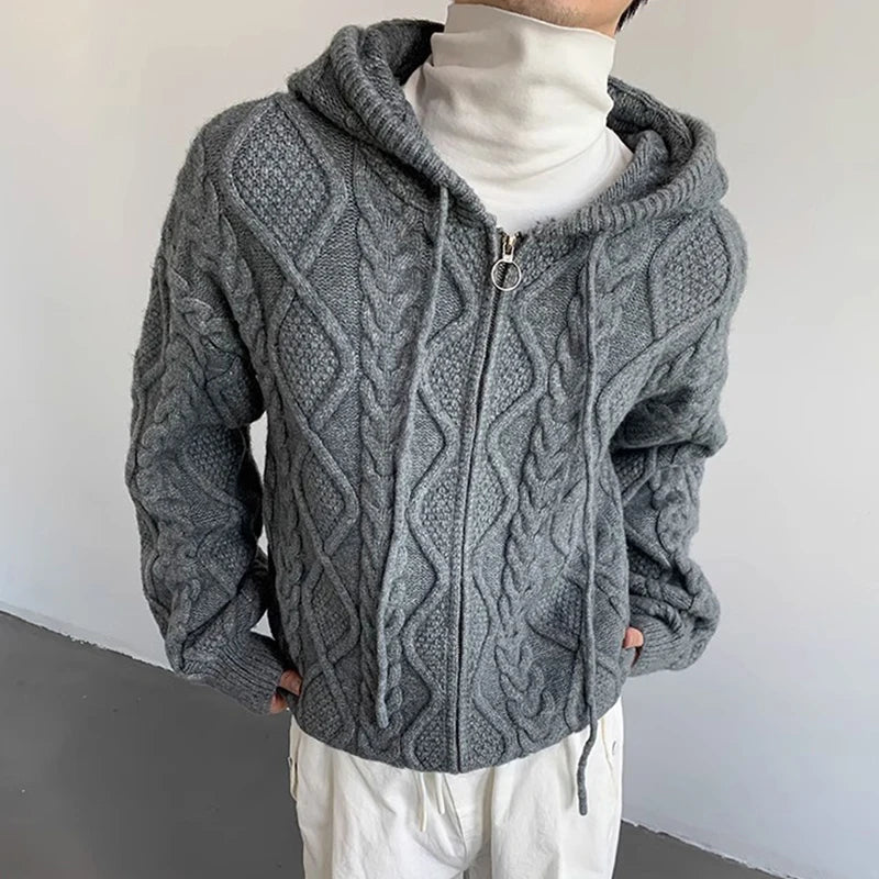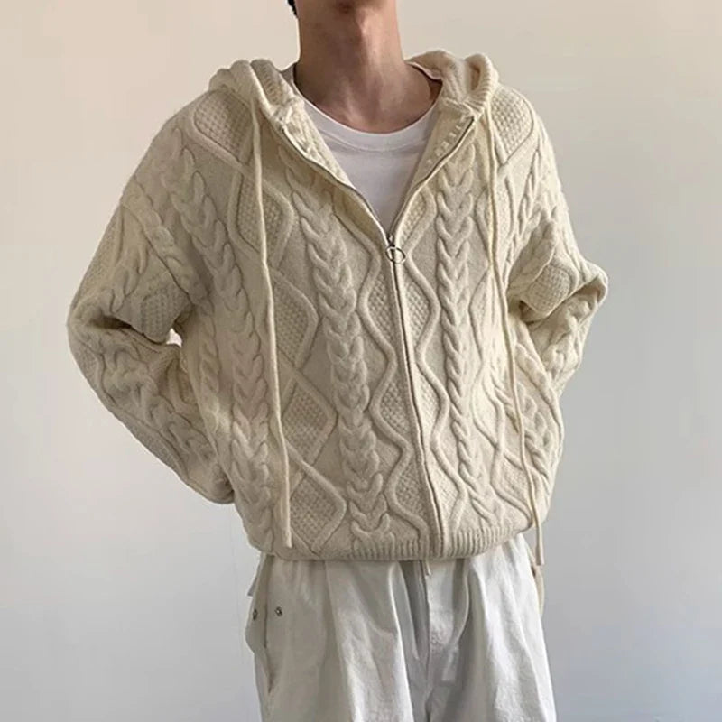 Advbridge Autumn Clothing Men's Light Luxury Jacquard Knitted Hooded Cardigan Sweater Korean Popular Zipper Long Sleeve Hoodie Knitwear