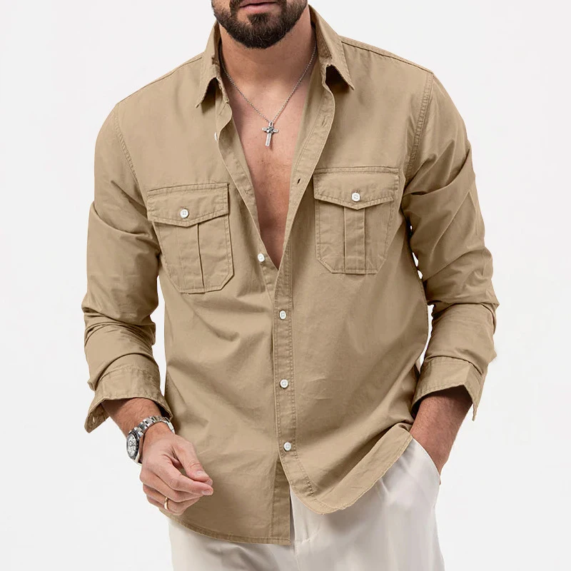 Advbridge Autumn Loose Vintage Lapel Button Solid t Shirts Casual Streetwear Military Shirt Men Clothing Fashion Pockets Solid Cargo Coat