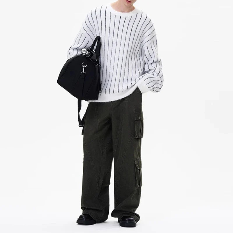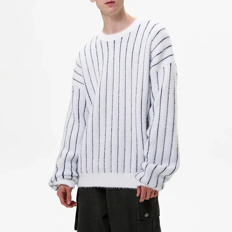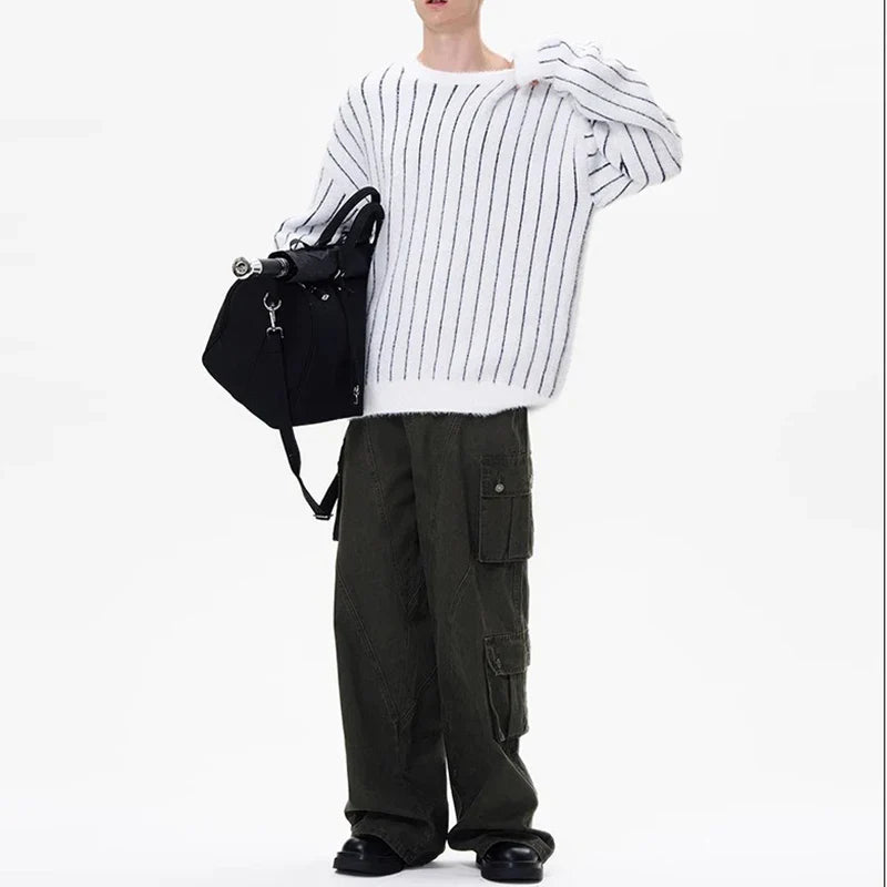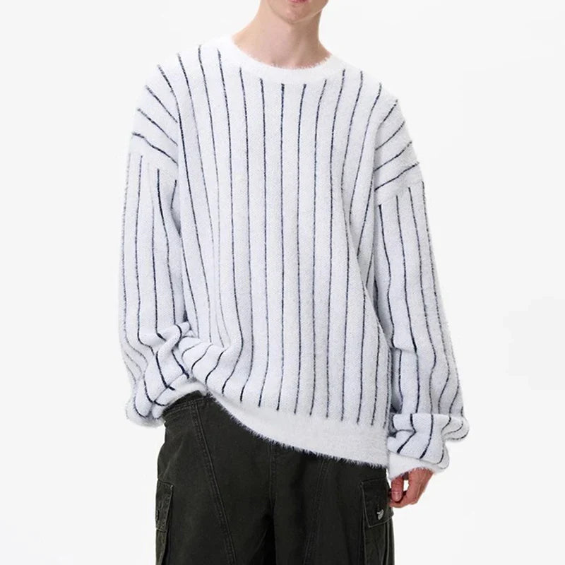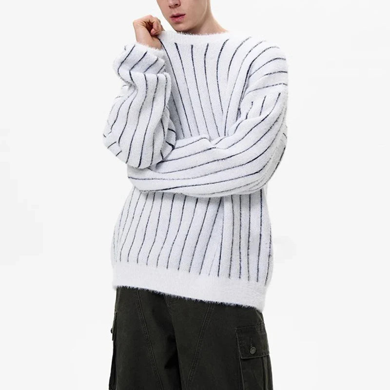 Advbridge Autumn Men's Luxury Striped Knit Pullover Sweater Long Sleeve Casual Streetwear Loose Stylish Leisure Korean Popular Knitwear
