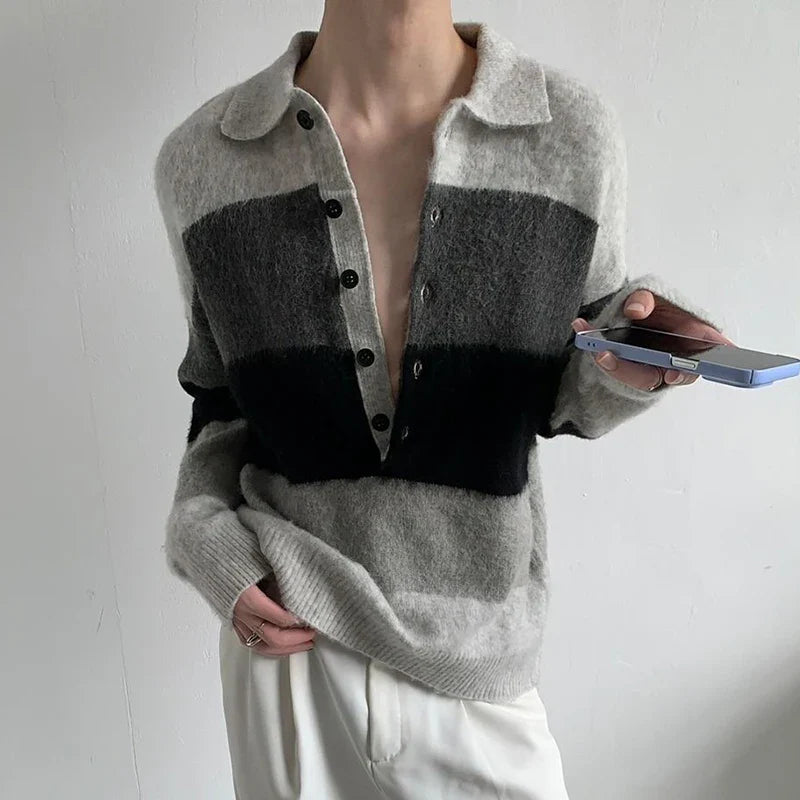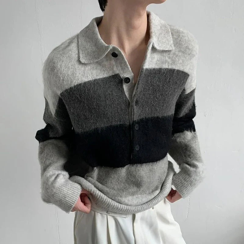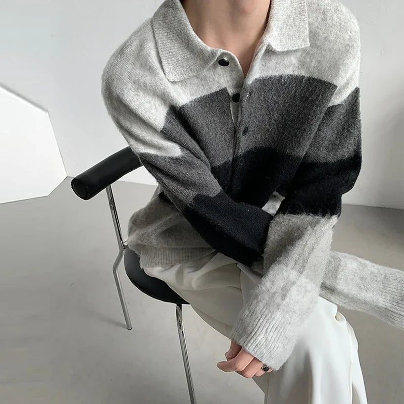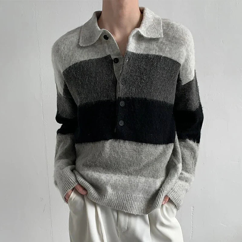 Advbridge Autumn Men's Luxury Striped Polo Neck Knit Pullover Sweater Long Sleeve Casual Streetwear Leisure Korean Popular Knitwear M-2XL