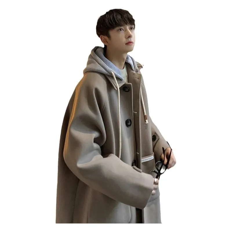 Advbridge Autumn Winter Fashion Men's Woolen Coats Hooded Solid Single Breasted Lapel Long Coat Thick Jacket Casual Overcoat