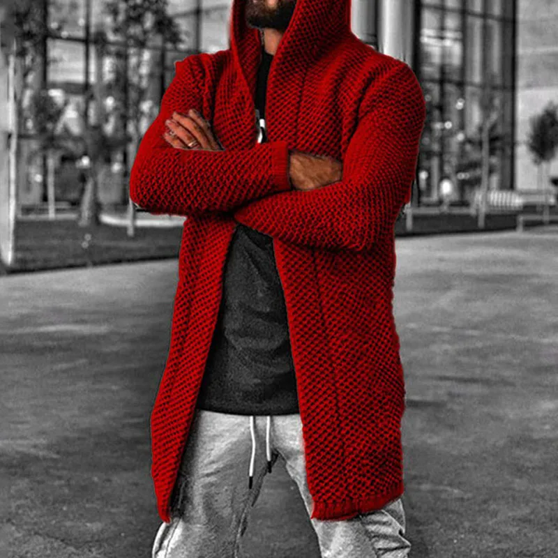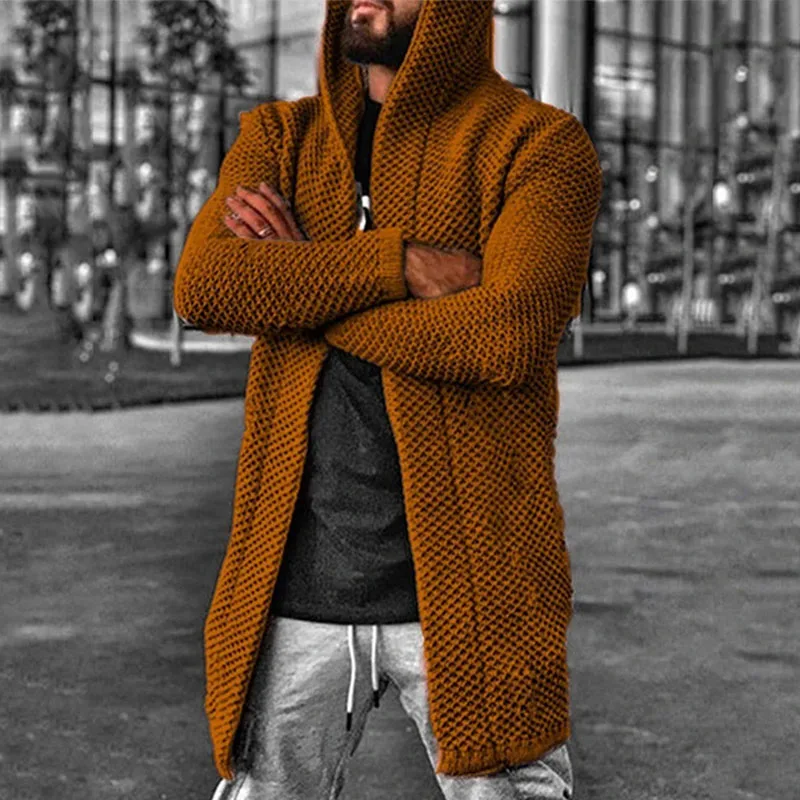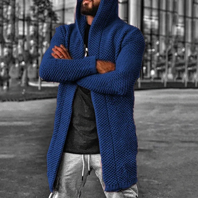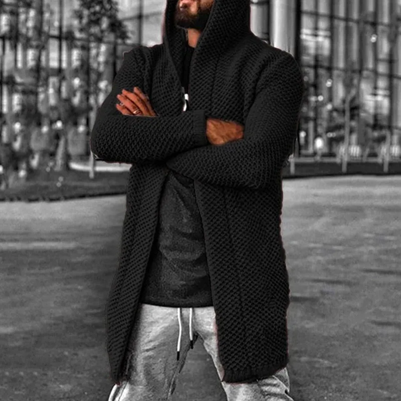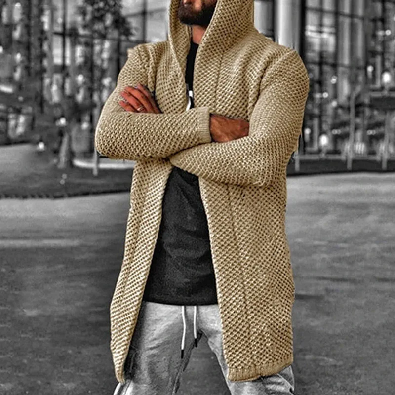 Advbridge Autumn Winter Hooded Sweater Coat Men Fashion Long Sleeve Solid Knittd Cardigan Casual Mens Loose Outwear New Long Hooded Tops