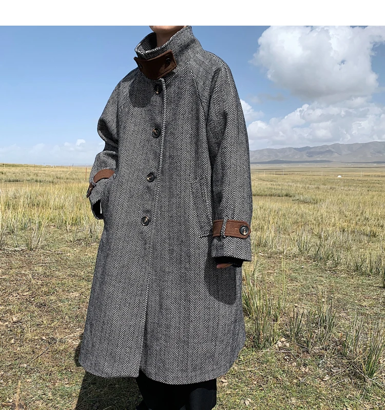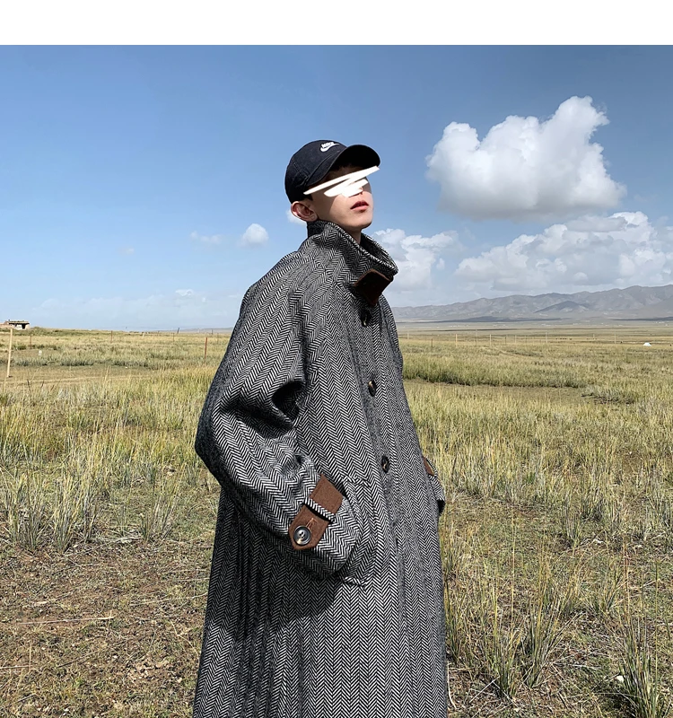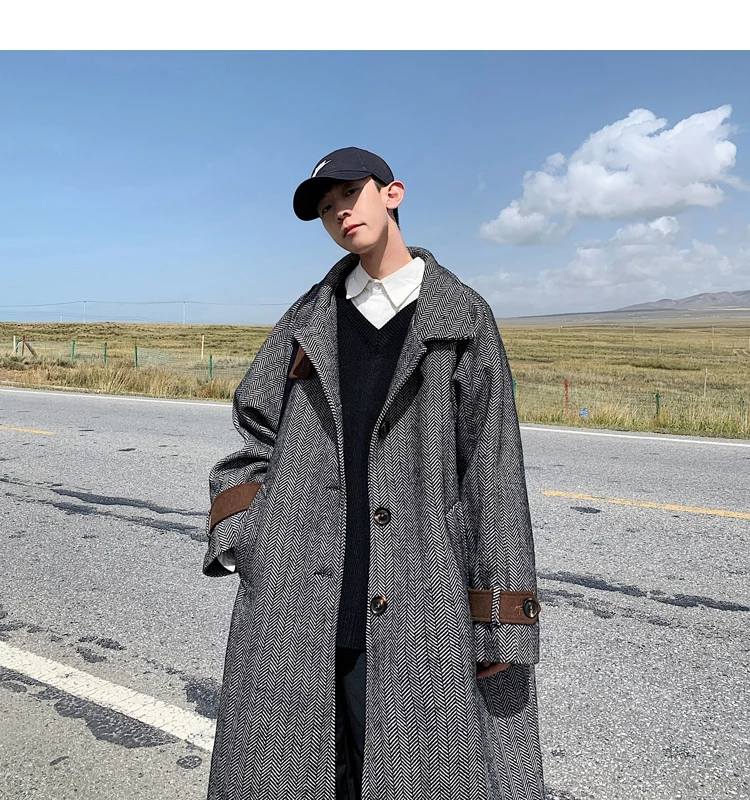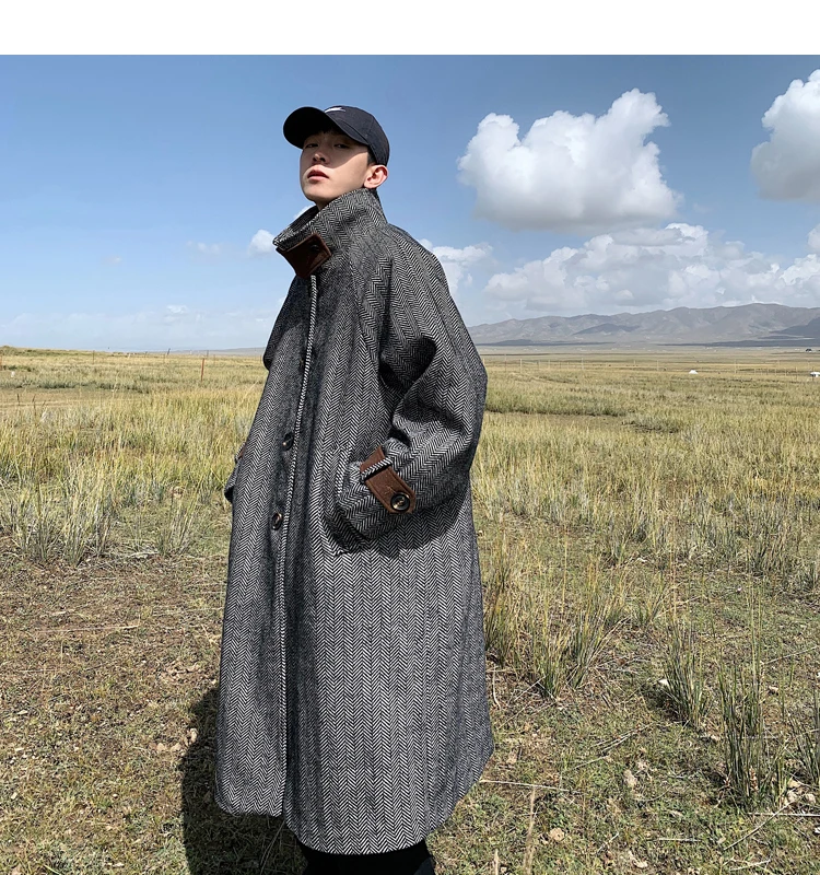Advbridge Autumn Winter Long Oversized Cool Warm Herringbone Woolen Trench Coat Men Single Breasted Loose European Fashion