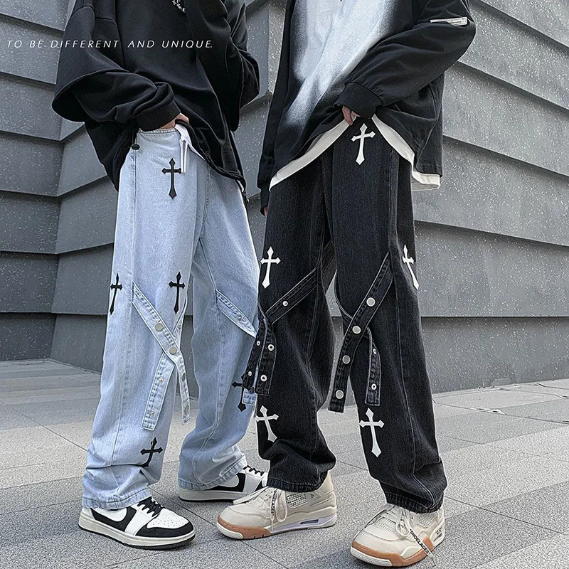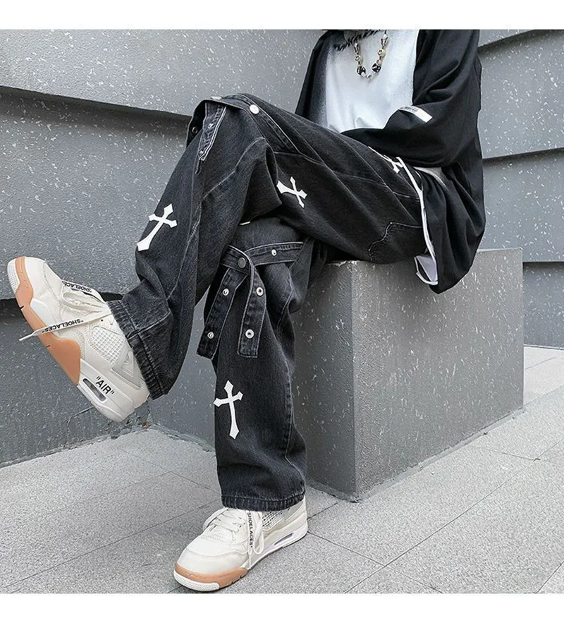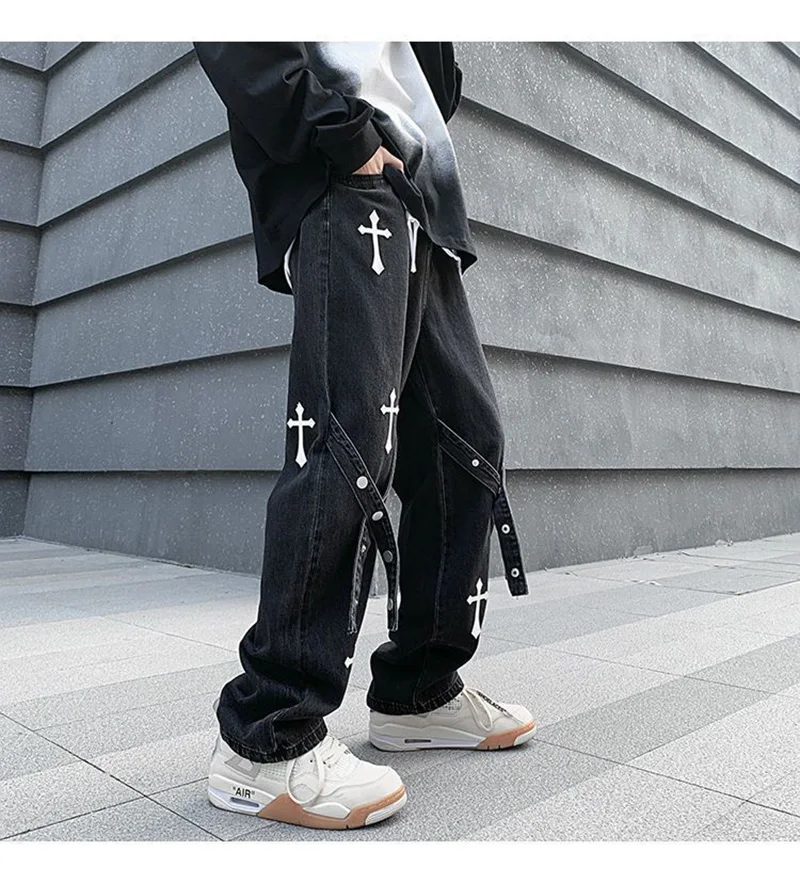 Advbridge Autumn Winter Men Cowboy Denim Trousers Male Streetwear Hip Hop Loose Jeans Fashion Casual Retro Cargo Pants Baggy Wide Leg Jean