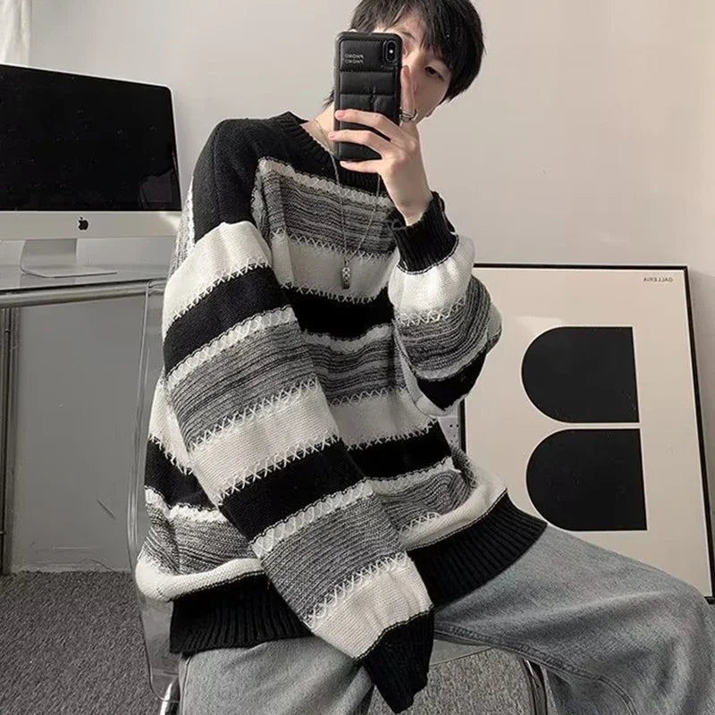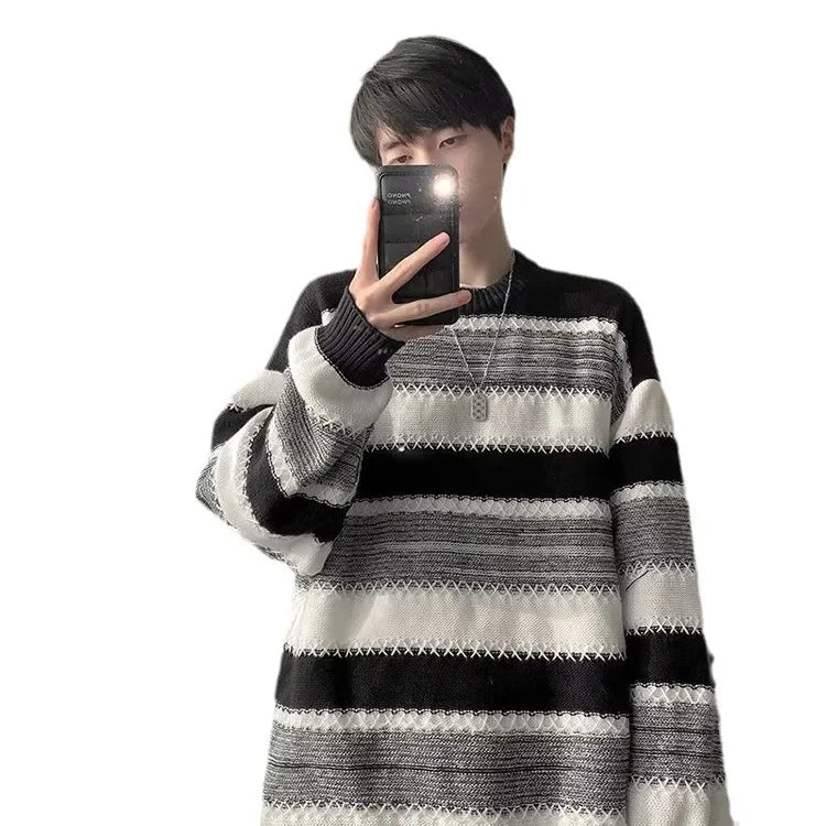 Advbridge Autumn Winter Striped Sweater Men Casual Knitted Pullover Korean Fashion Streetwear Men Clothing New Oversized Sweater Male