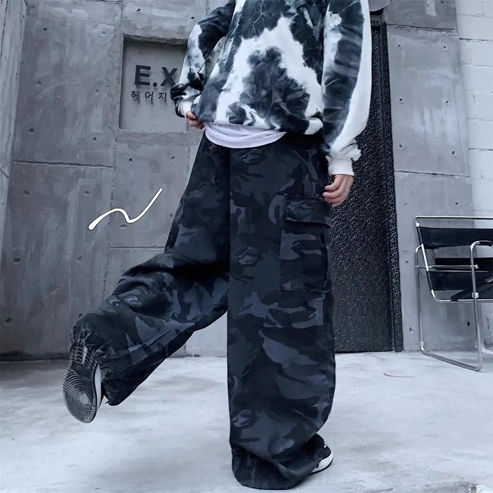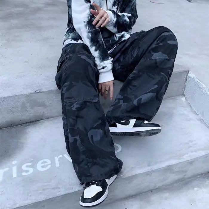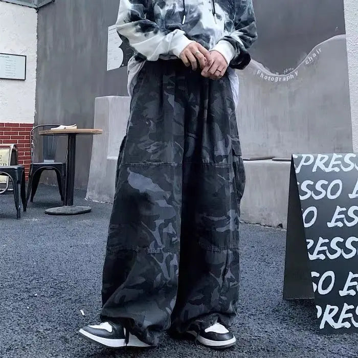 Advbridge Cargo pants men patch pocket camouflage pants retro street loose wide leg casual pants harajuku japanese streetwear men clothing