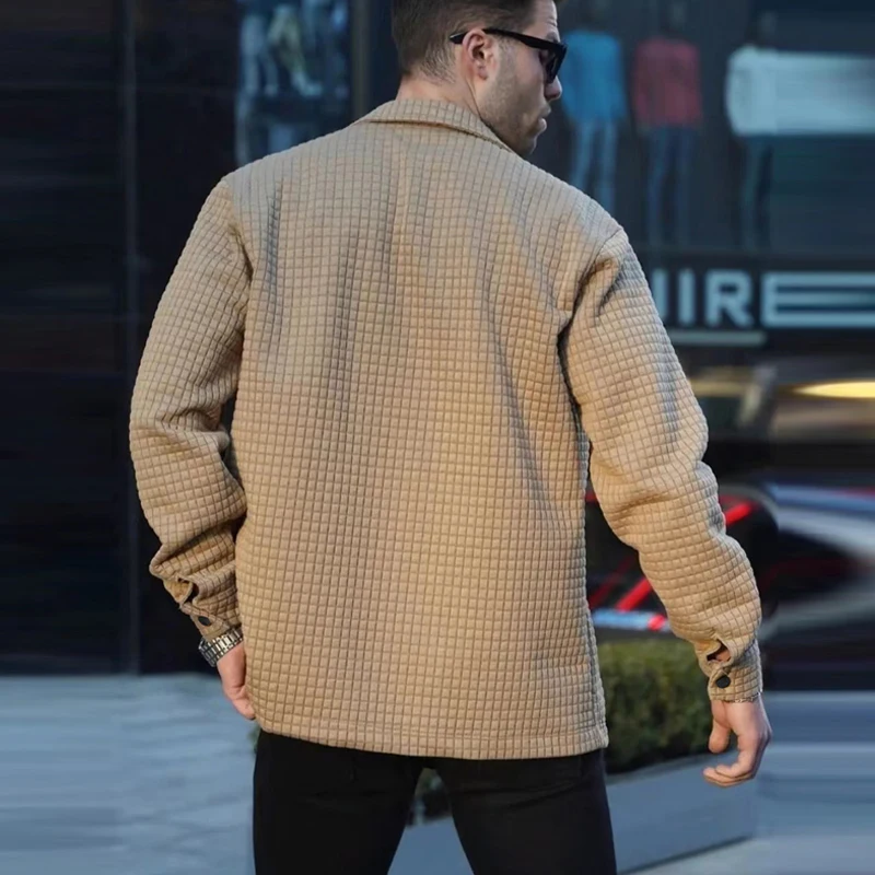 Advbridge Casual Man Long Sleeve Loose Outwear Winter Check Print Single Breasted Men Coats Streetwear Autumn Jacquard Solid Jackets