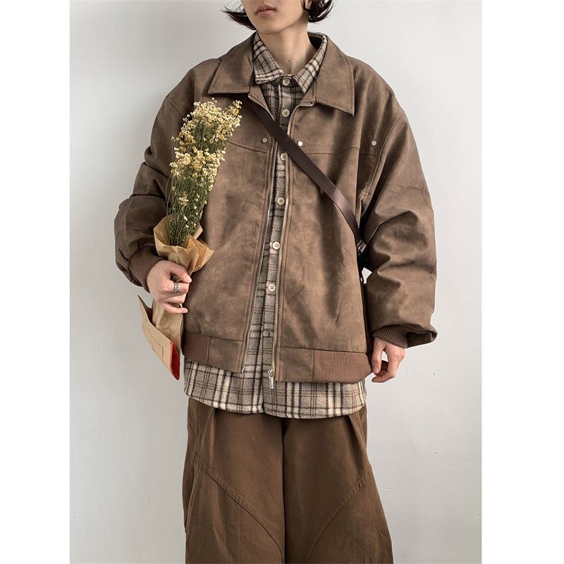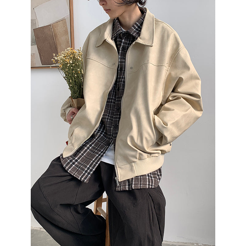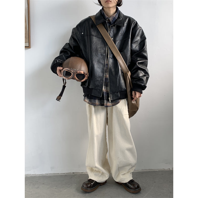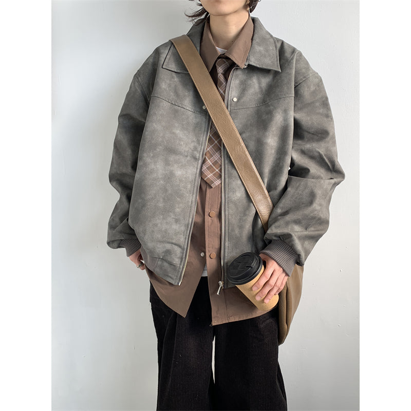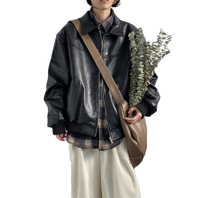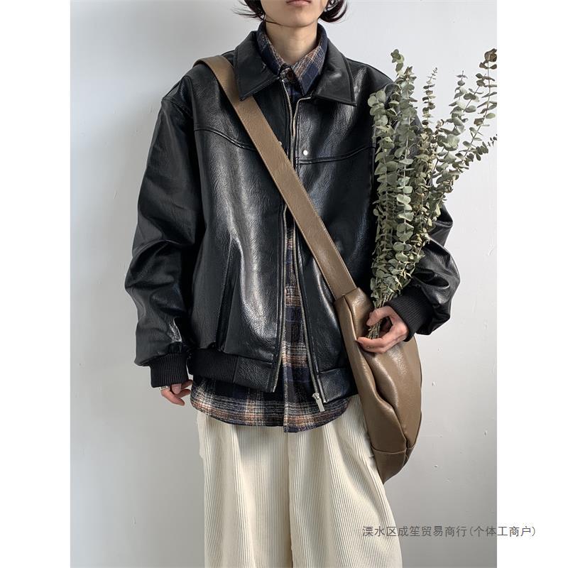 Advbridge concert outfit ideas Japanese Retro PU Leather Jacket Men's Spring Oversize Pu Handsome Loose Lapel Leather Jacket