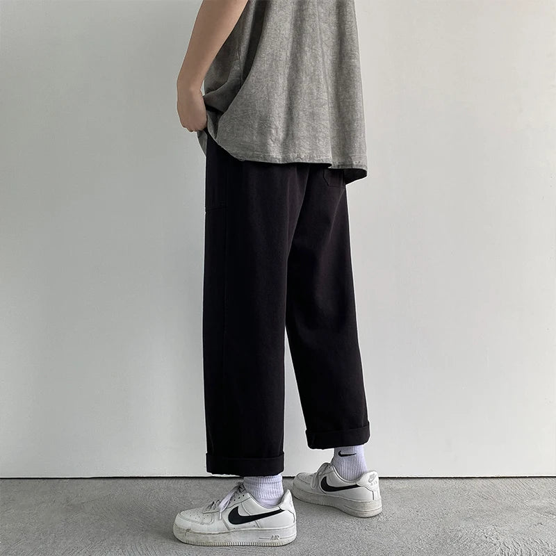 ADVBRIDGE - Cotton Casual Pants Men Oversized Wide Leg Pants Men Japanese Streetwear Hip-hop Loose Straight Pants Men Beige Trousers S-2XL