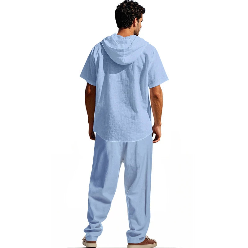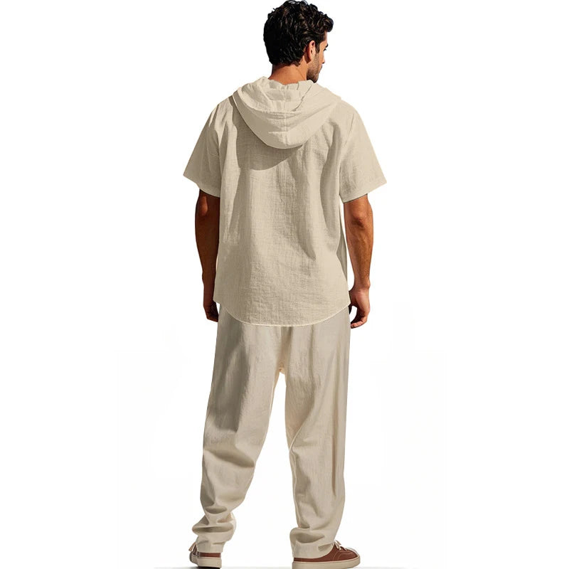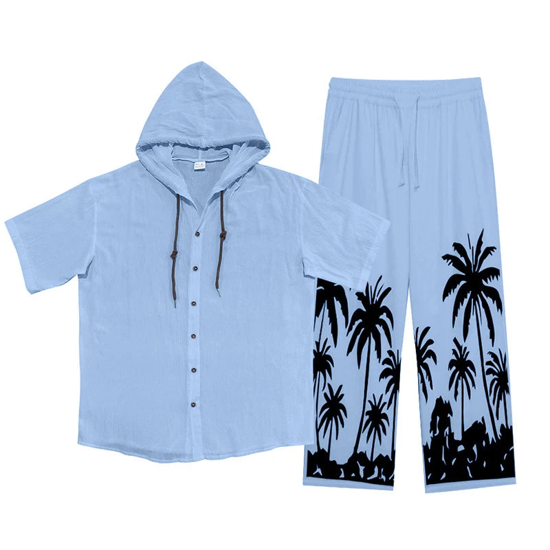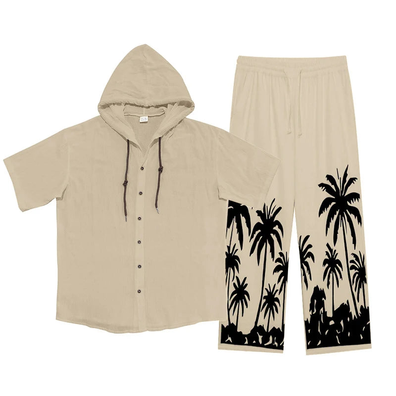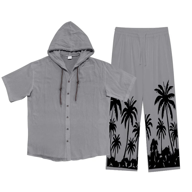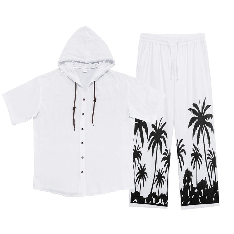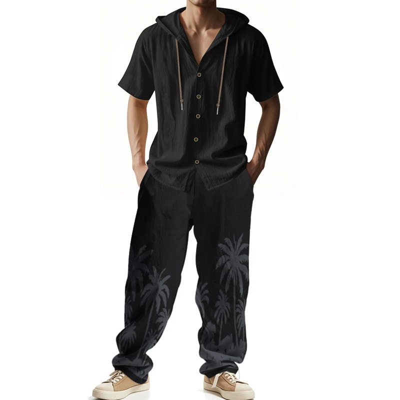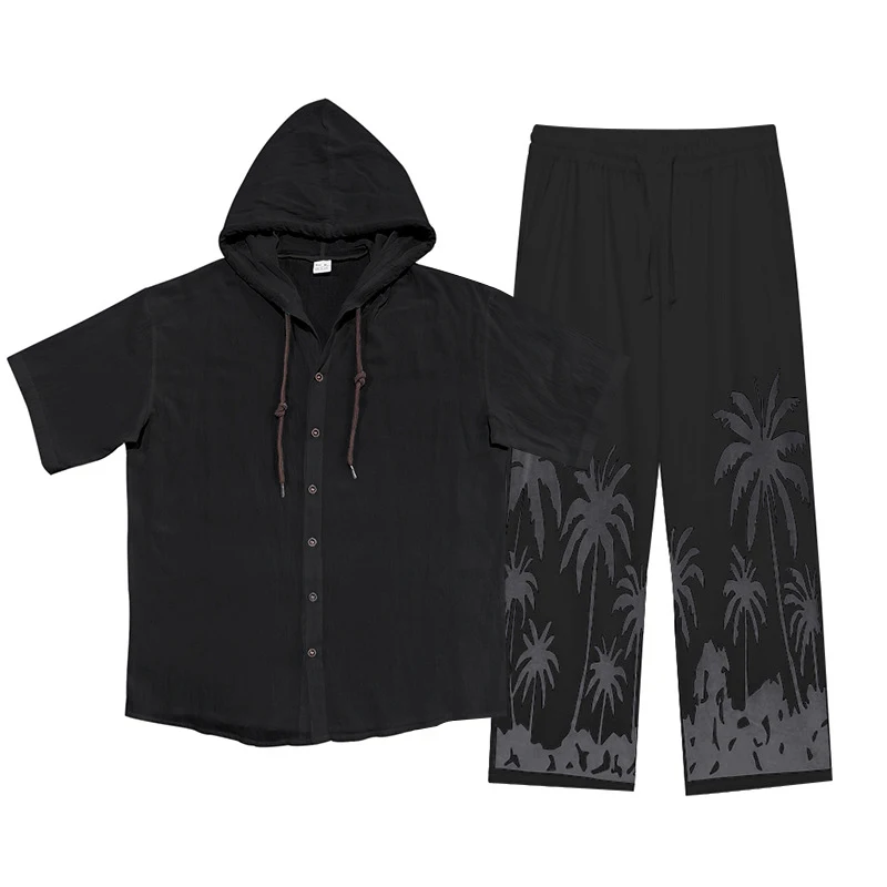 ADVBRIDGE  -  Daily Casual Loose Two Piece Suits Men Summer Fashion Pattern Print Outfits Mens Short Sleeve Hooded Shirts And Pants Loose Sets