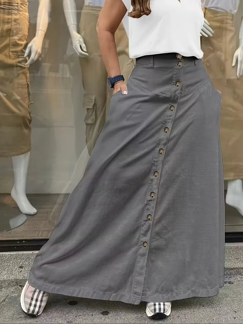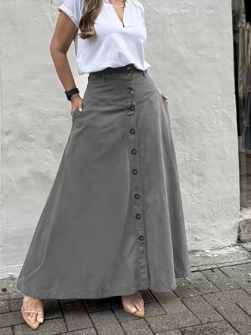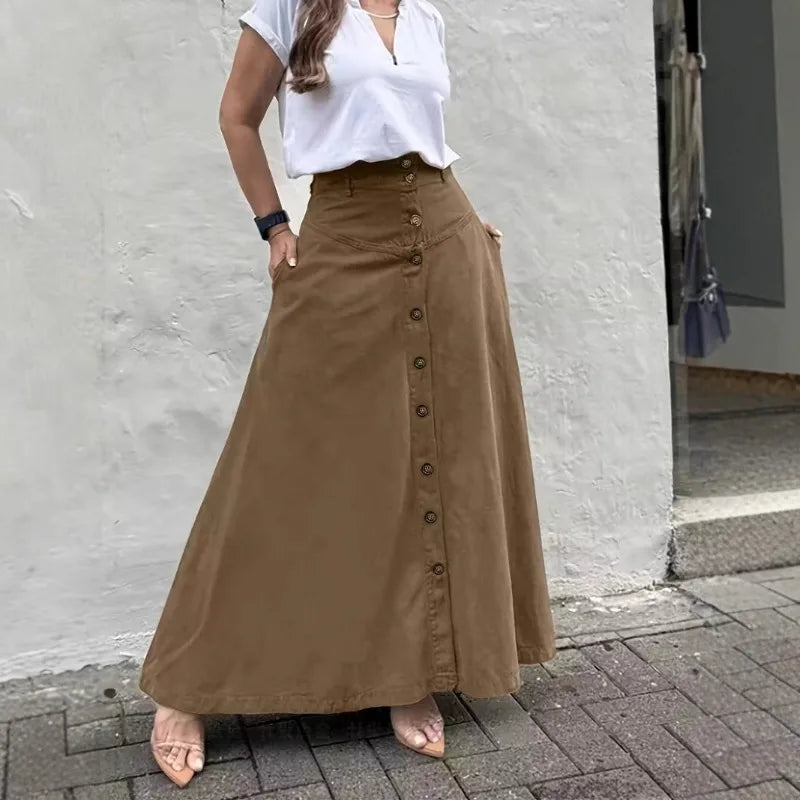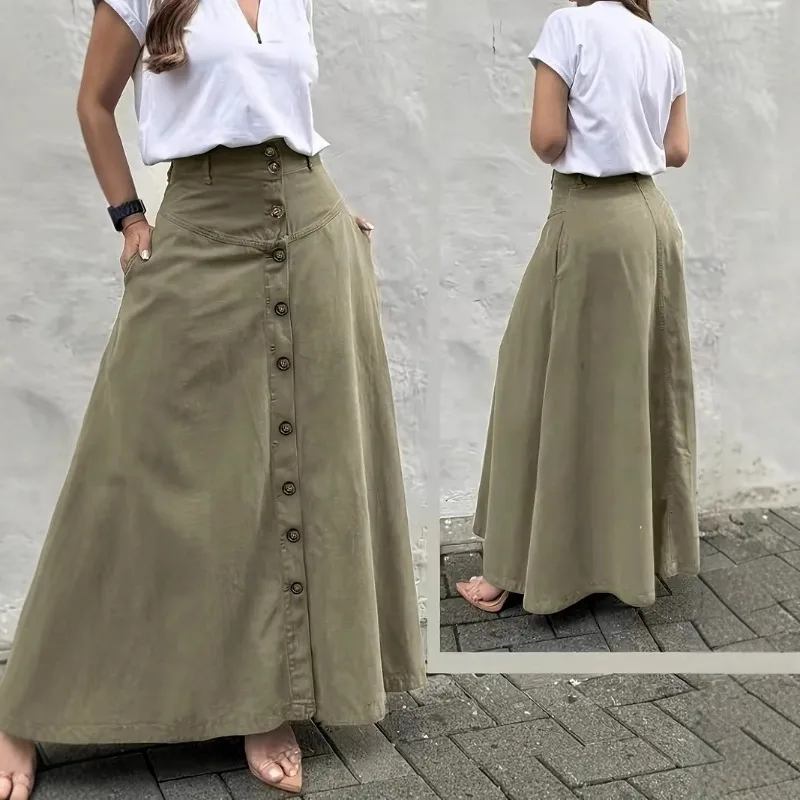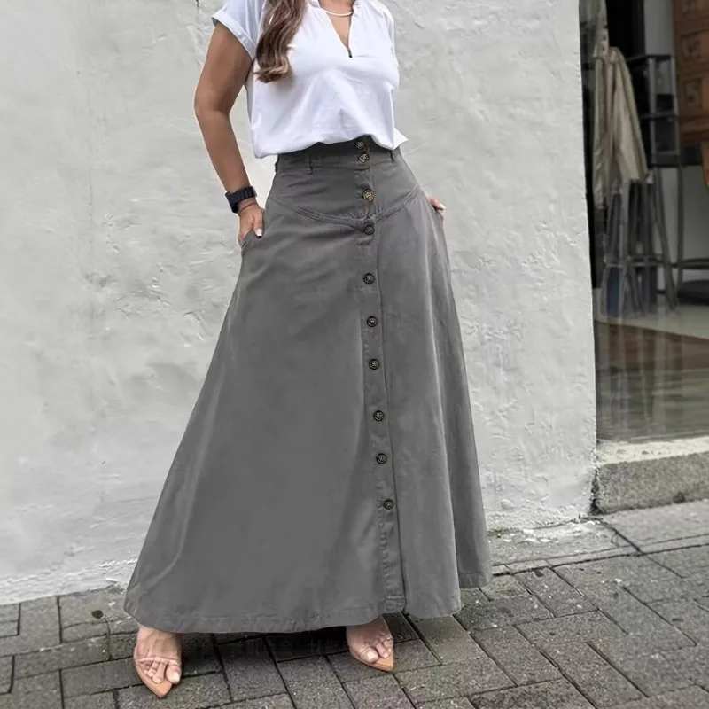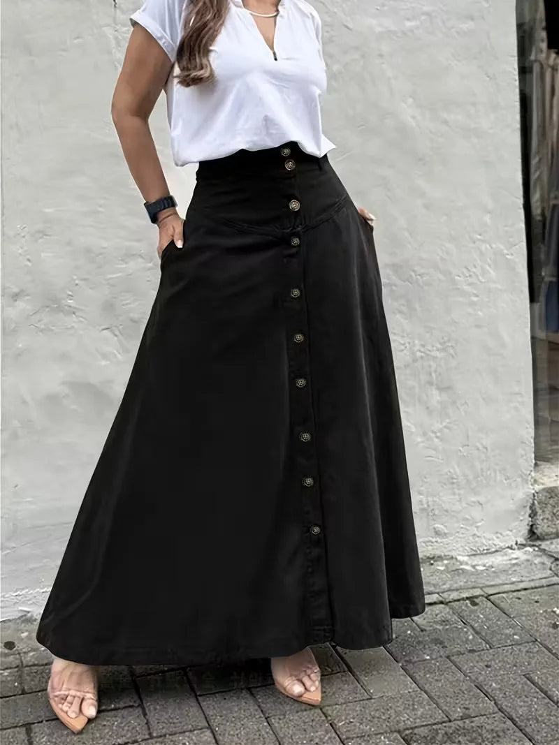 ADVBRIDGE - Elegant French High Street Long Skirt Y2k Aesthetic Front Single Breasted Design A-line Temperament Jupe New Harajuku Punk Skirt